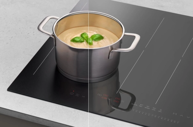 Deska automaticky rozpozná větší nádobí a spojí dvě varné zóny do jedné. Vařte pohodlně ve velkém a s rovnoměrným rozložením tepla.