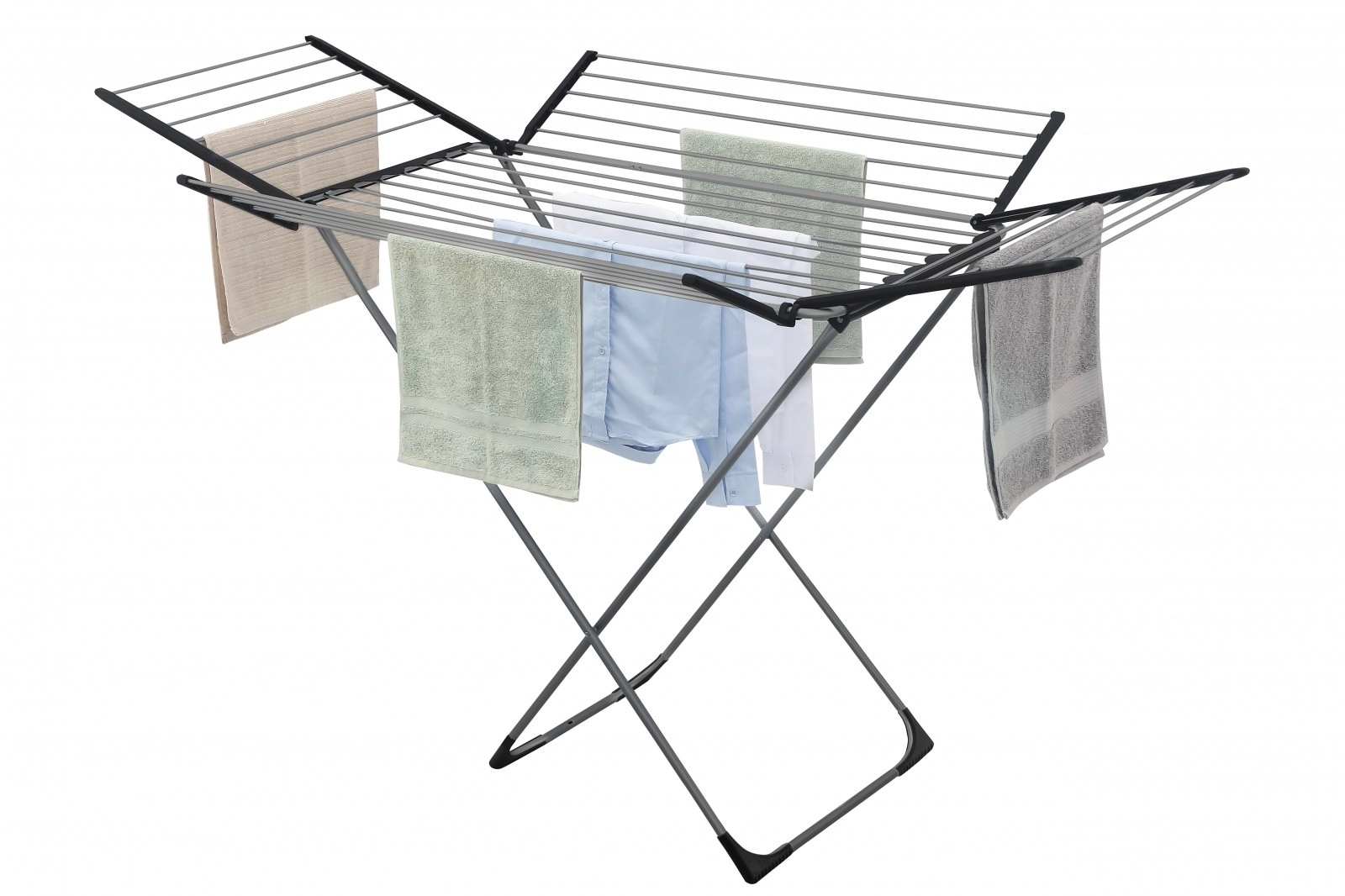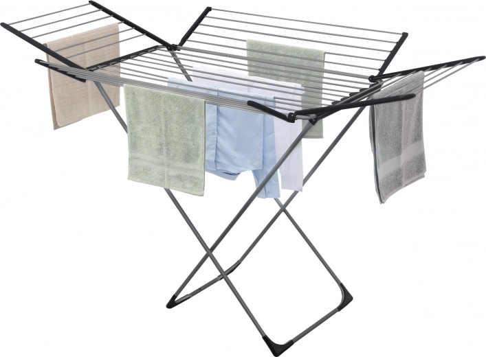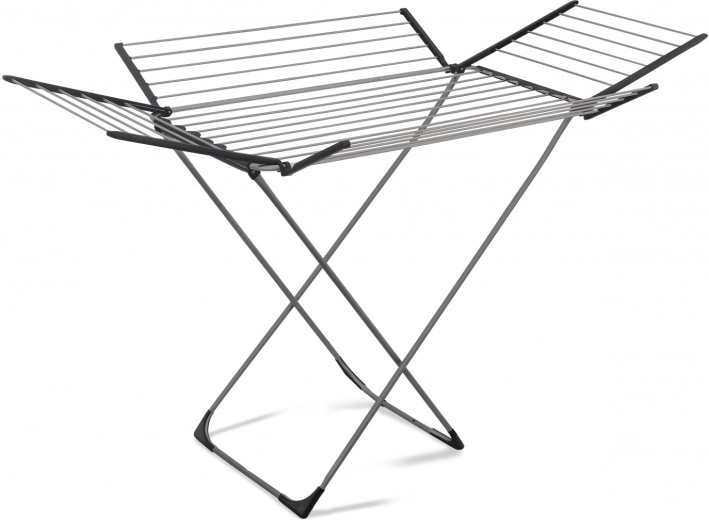 Díky promyšlené skládací konstrukci jej snadno rozložíte i složíte podle potřeby a dvě podélná křídla výrazně rozšíří využitelnou plochu. Nízká hmotnost usnadňuje manipulaci, takže sušák rychle přesunete z obýváku na balkon či lodžii.