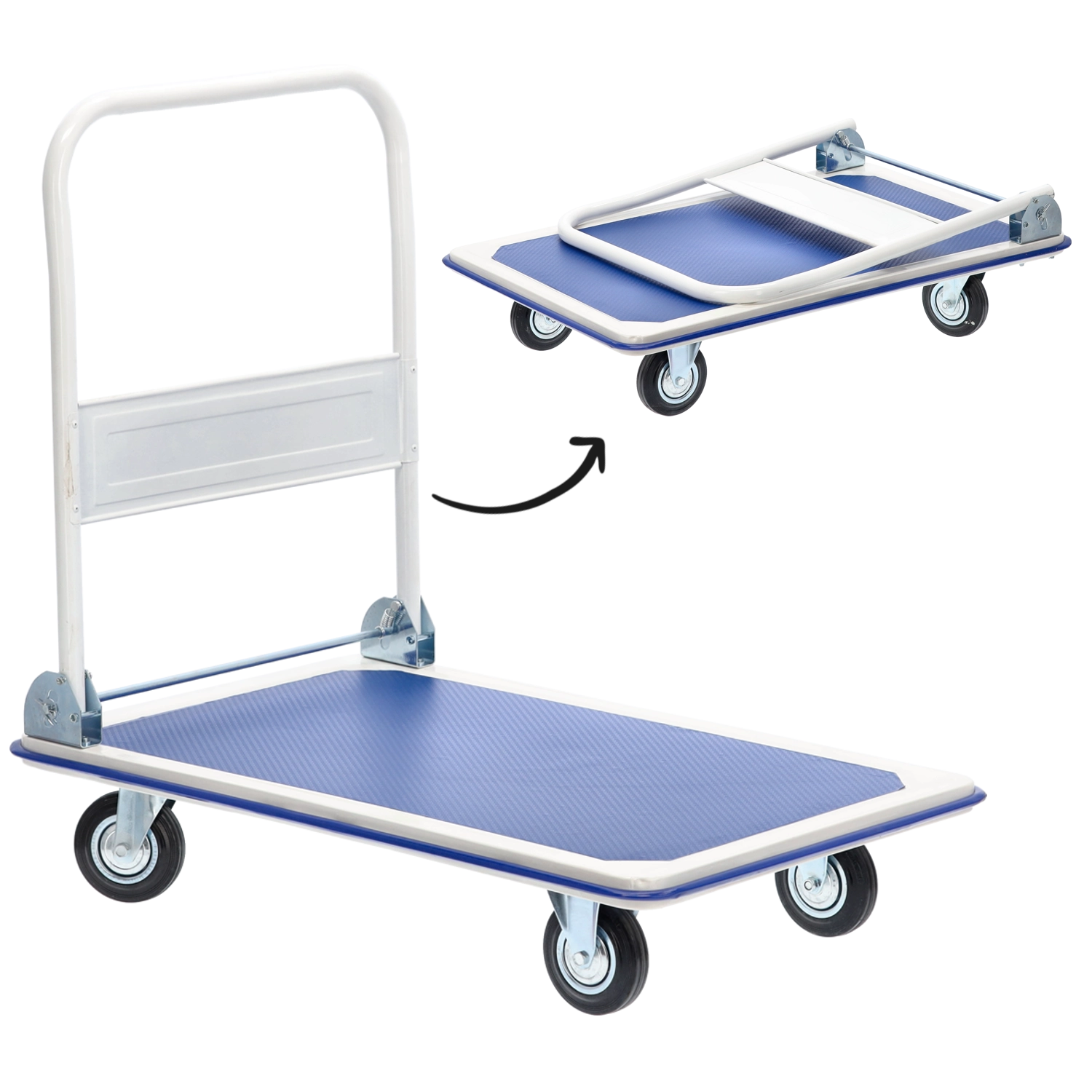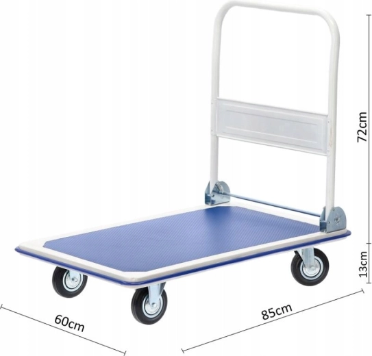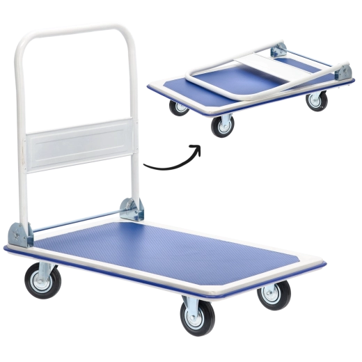 Praktický plošinový vozík s robustní konstrukcí a nosností až 300 kg usnadní přepravu balíků, beden i nářadí v dílně, kanceláři či skladu. Kompaktní rozměry, skládací rukojeť a otočná kolečka zajišťují snadné manévrování a úsporné skladování. Protiskluzová texturovaná plošina drží náklad bezpečně na místě.