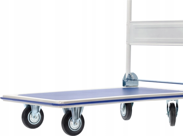 Vozík je ideální pro sklady, pošty, kanceláře, dílny i garáže. Otočná kolečka usnadňují průjezd úzkými uličkami, zatímco pevná plošina s texturou zabraňuje posunu nákladu. Hladký chod a jisté řízení šetří čas i námahu.