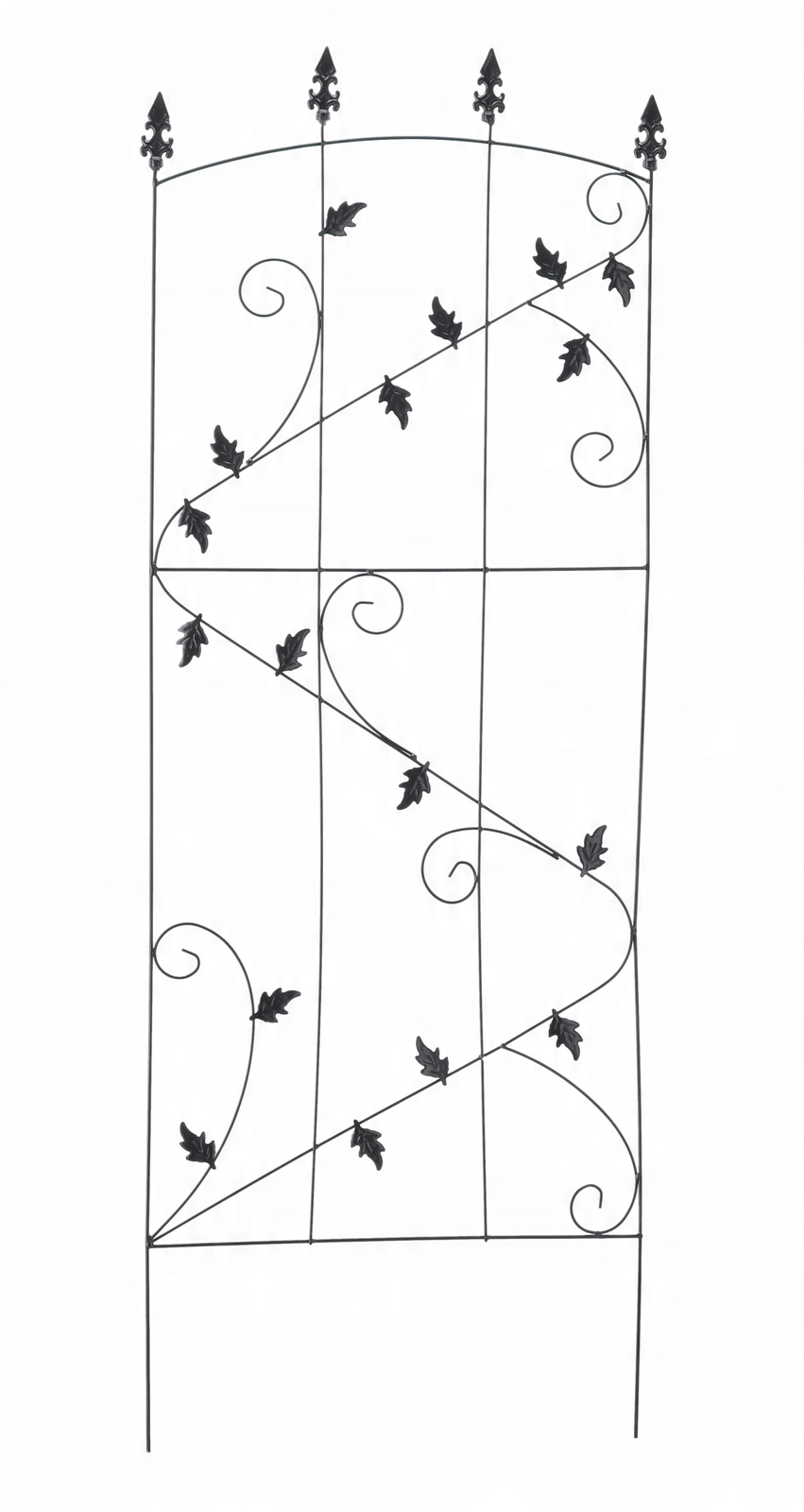 Elegantní kovová opora pro popínavé rostliny o rozměrech 60 × 167 cm zajistí vašim květinám a vinným výhonkům potřebnou stabilitu a krásně je nasměruje k růstu. Díky pevné kovové konstrukci a odolnému černému provedení je ideální do záhonů, květináčů i k plotům. Skvěle chrání před větrem, pomáhá k rychlejšímu a zdravějšímu růstu a zároveň je dekorativním prvkem každé zahrady, terasy či balkonu.