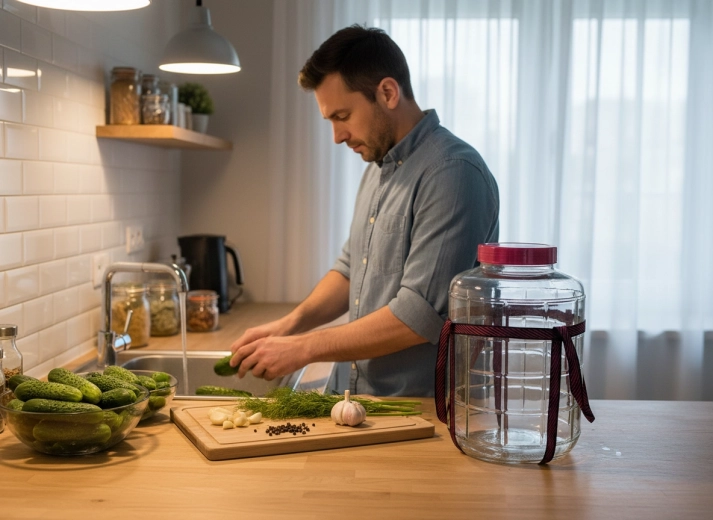 • Kvašené dobroty – okurky, zelí a další kvašené produkty pro zdravé skladování.