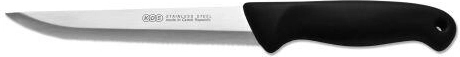 Praktický kuchyňský nůž s pilkovitým ostřím o délce čepele 155 mm pro snadné krájení pečiva, zeleniny i masa. Vyroben z vysoce kvalitní nerezové oceli, s odolnou a hygienickou plastovou rukojetí. Lehký (61 g), vyvážený a vhodný pro domácí i profesionální použití. Lze mýt v myčce nádobí.