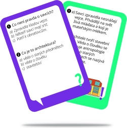 Zábavná vzdělávací hra s 53 oboustrannými kartami a celkem 106 otázkami z přírody, kultury, historie, technologií i sportu. Kompaktní cestovní balení je ideální na výlety i do školního batohu a díky přehledným kartám s odpověďmi na rubu se děti učí hrou. Hra je držitelem certifikace Bezpečná a kvalitní hračka.