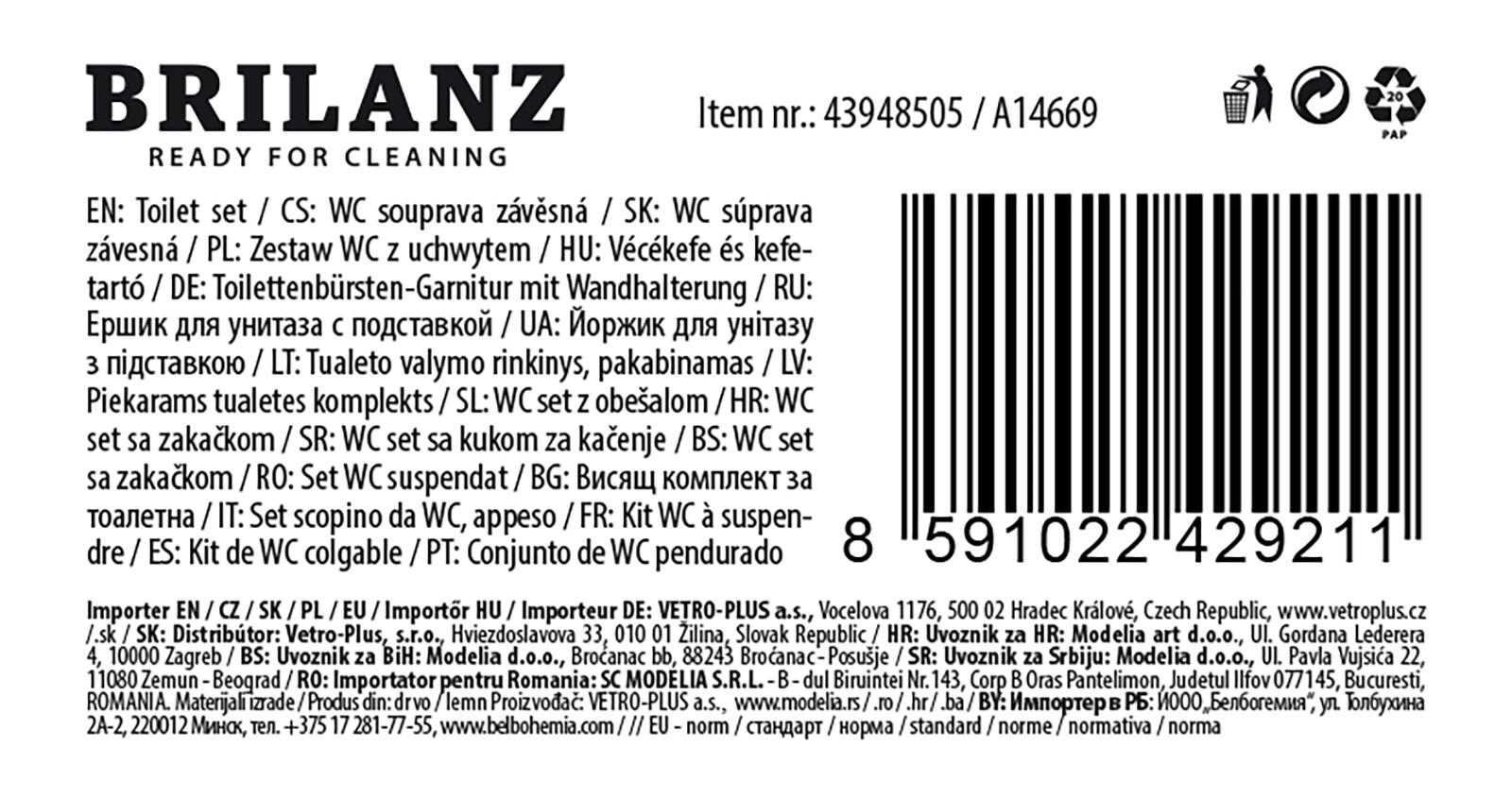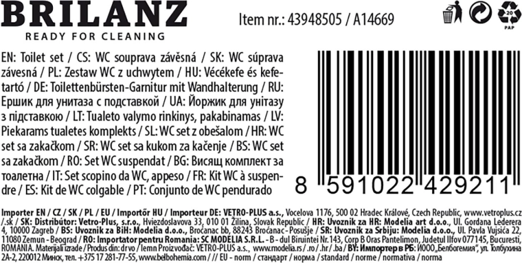 Díky zarážce v polovině rukojeti zůstává štětka bezpečně usazená v držáku, což zvyšuje hygienu i pohodlí při používání. Kompaktní rozměry 39 × 15 cm se hodí do malých i větších koupelen.