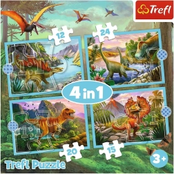 Trefl puzzle 4 v 1 Výjimeční dinosauři je balení, které potěší každého malého archeologa! Obsahuje čtyři různé skládačky s motivy dinosaurů, každou s odlišným počtem dílků (12, 15, 20, 24). Po složení puzzlí vzniknou čtyři obrázky o rozměrech 285 x 205 mm, což zaručí zábavu jak pro mladší, tak i starší fanoušky puzzle her.