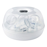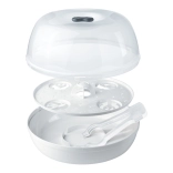 Sterilizátor má pouze tři části, takže se velmi snadno skládá i čistí – po použití jej stačí otřít nebo vložit do myčky nádobí. Je vhodný pro většinu standardních mikrovlnných trub s minimálním vnitřním prostorem 187 mm (výška) × 280 mm (šířka a hloubka). Kompatibilní s lahvemi a příslušenstvím z materiálů vhodných do mikrovlny (PA lahve a dudlíky nejsou vhodné).