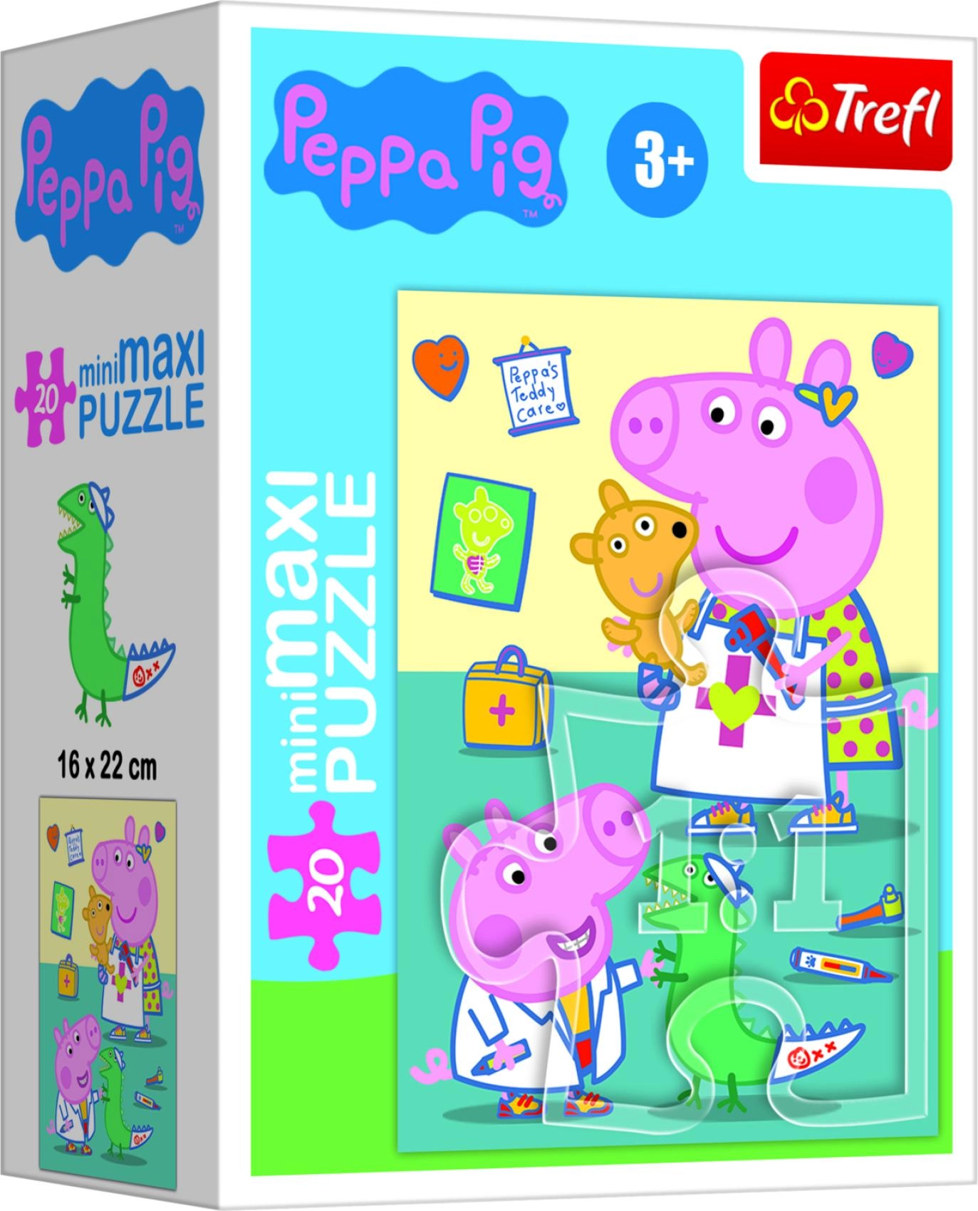 Udělejte radost malým fanouškům seriálu PRASÁTKO PEPPA. Maxi puzzle s 20 velkými dílky jsou uzpůsobena dětským ručkám, snadno se spojují a díky výrazným barvám udrží pozornost. Hotový obrázek má rozměr 16 × 22 cm – ideální velikost pro první samostatné skládání.