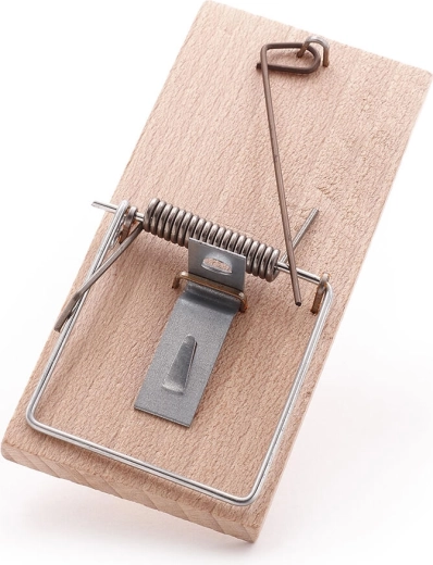 Klasická sklapovací past na myši s pevnou bukovou základnou pro spolehlivé a rychlé hubení hlodavců. Snadné natažení a zajištění, možnost použití různých návnad (sýr, uzeniny, oříšky či sladké potraviny). Odolné provedení pro opakované použití doma, na chalupě i ve sklepě.