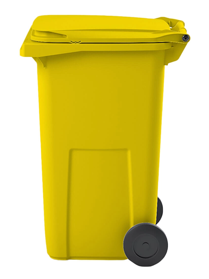 Robustní venkovní popelnice o objemu 240 l ze vysokohustotního polyetylenu (HDPE) v žluté barvě pro spolehlivý sběr odpadu. Odolává UV záření, mrazu i vodě, nabízí tichý provoz 79,1 dB dle směrnice 2000/14/ES a je certifikovaná dle EN 840 (TÜV). Díky kolečkům a standardu výsypu DIN se snadno manipuluje i vyváží.