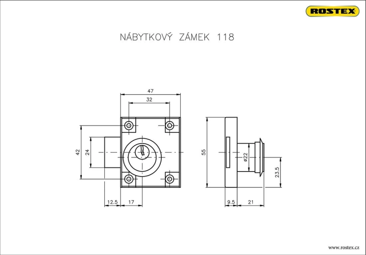 Praktický nábytkový cylindrický zámek 118/50 je ideální volbou pro uzamykání skříněk, skříní a šuplíků. Díky univerzální konstrukci je vhodný pro pravé i levé dveře a poskytuje bezpečné a pohodlné ovládání.
