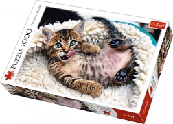 Tyto puzzle o 1000 kusech zobrazují veselého koťátka. Po sestavení vytvoří obrázek o rozměrech 68x48 cm. Zaručují vysokou kvalitu, jasné barvy a bezpečnost skládání pomocí kalandrového papíru odpuzujícího světlo a ekologických potravinářských barev.