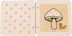 Díky kompaktním rozměrům 9 × 9 × 2,5 cm je knížka ideální na doma i na cesty. Přírodní materiál je snadno omyvatelný a vhodný pro každodenní hraní. Knížka pomáhá dětem rozvíjet hmat, zrakovou pozornost a koordinaci oko–ruka zábavnou formou.