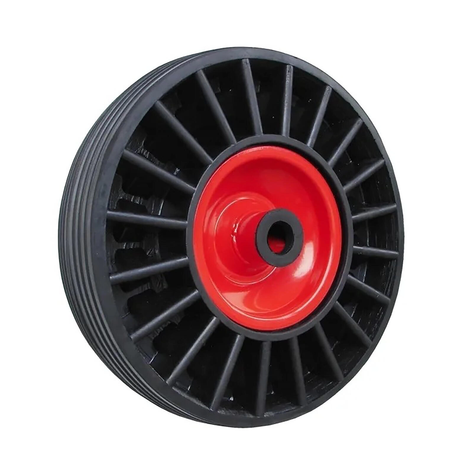 Robustní plné kolo s kovovým diskem je navrženo pro dlouhou životnost a minimální údržbu. Díky plné konstrukci nehrozí propíchnutí ani únik vzduchu, což zaručuje maximální spolehlivost při každodenním používání.