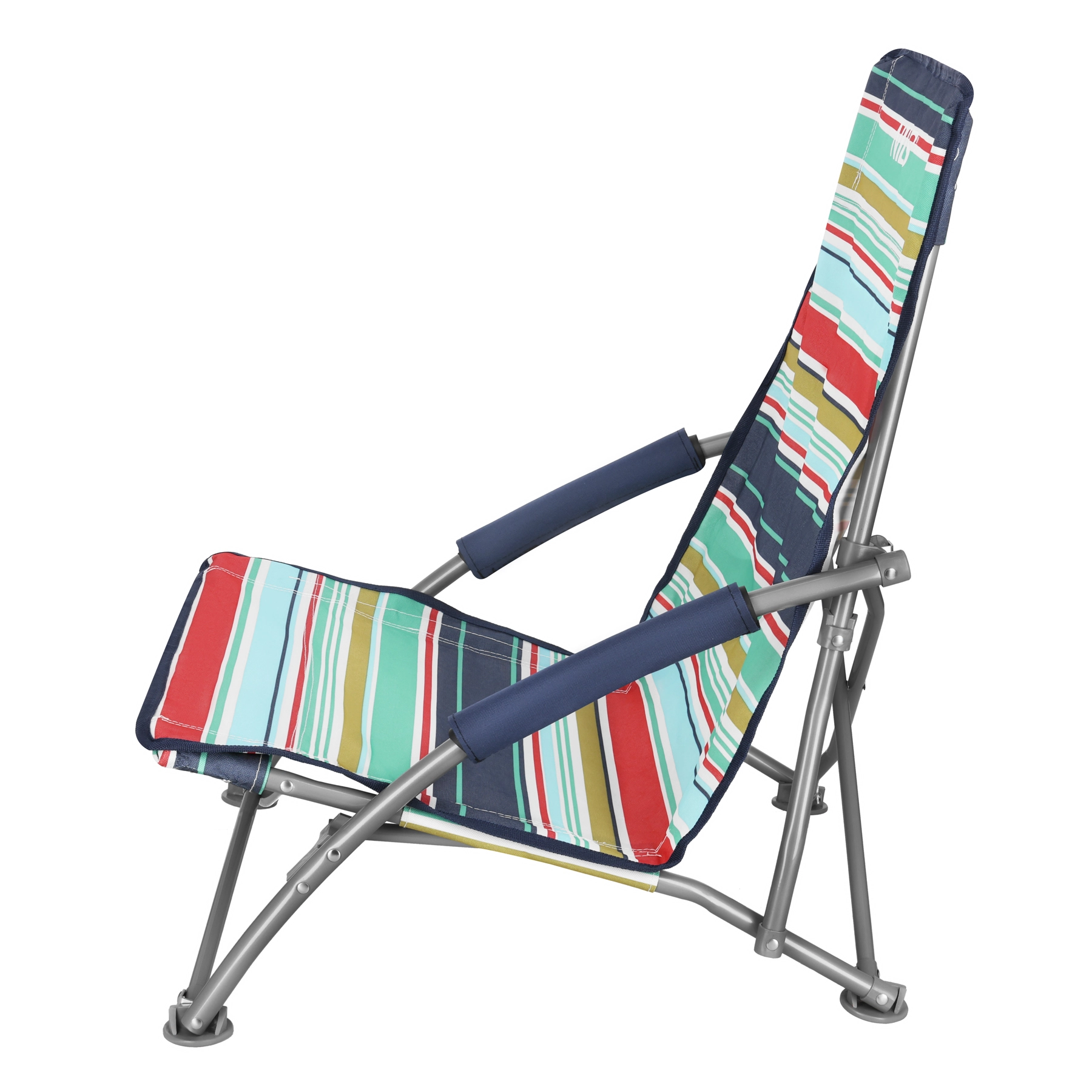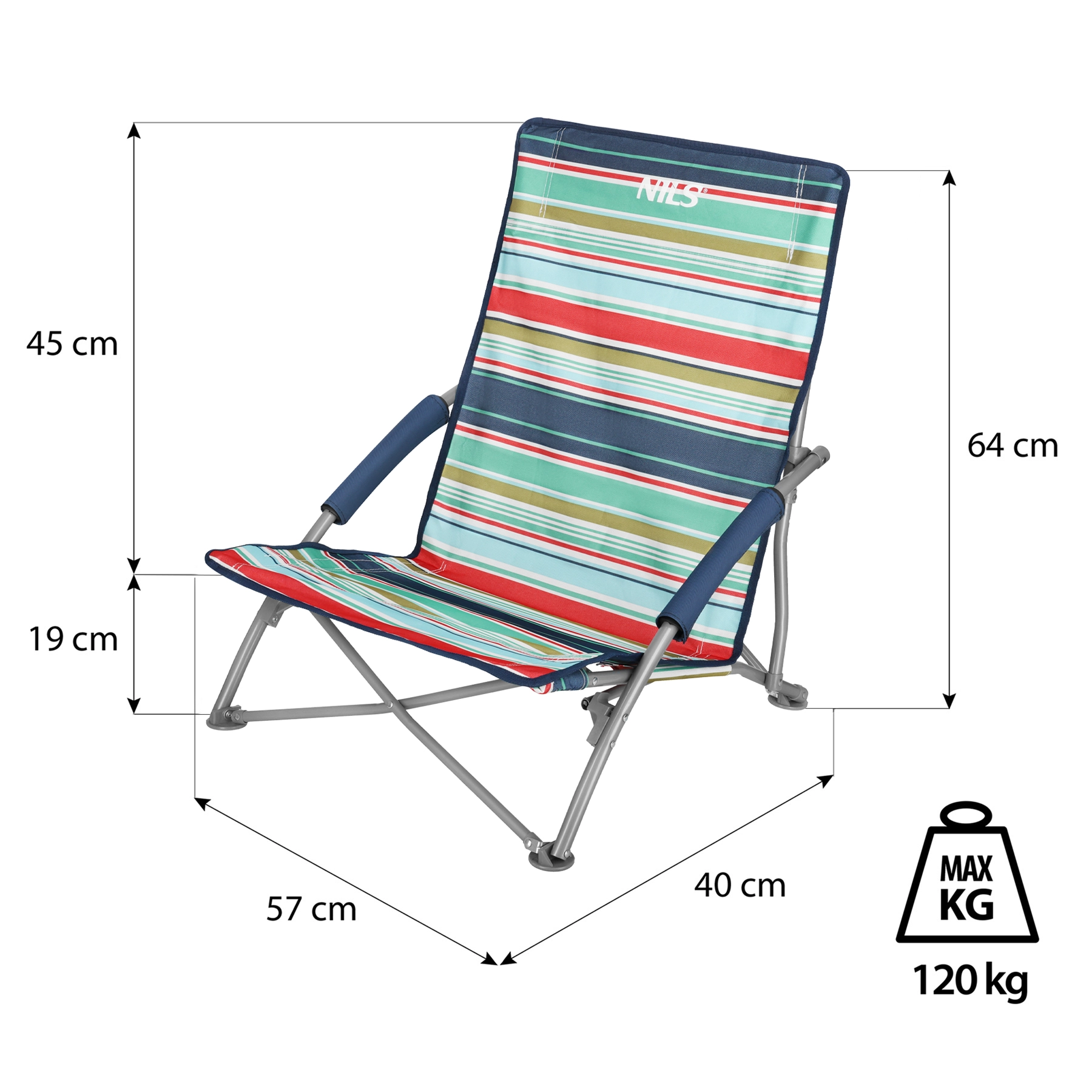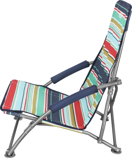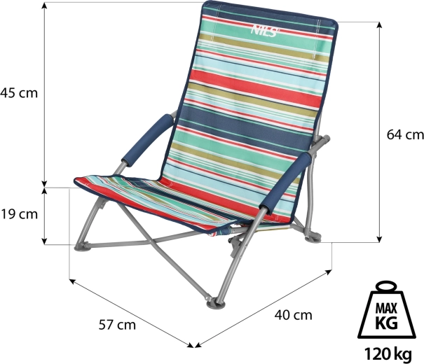 Pro maximální pohodlí má křeslo pěnové loketní opěrky a nízké sezení ideální na pláž. Kruhové plastové nožičky zvyšují stabilitu, zabraňují skluzu a v měkkém podkladu, jako je písek, se neboří. Po složení se křeslo vejde do přiloženého transportního vaku, což oceníte při cestování i skladování.