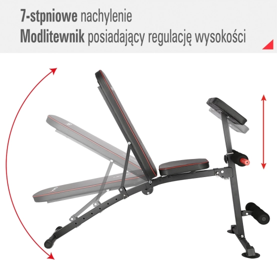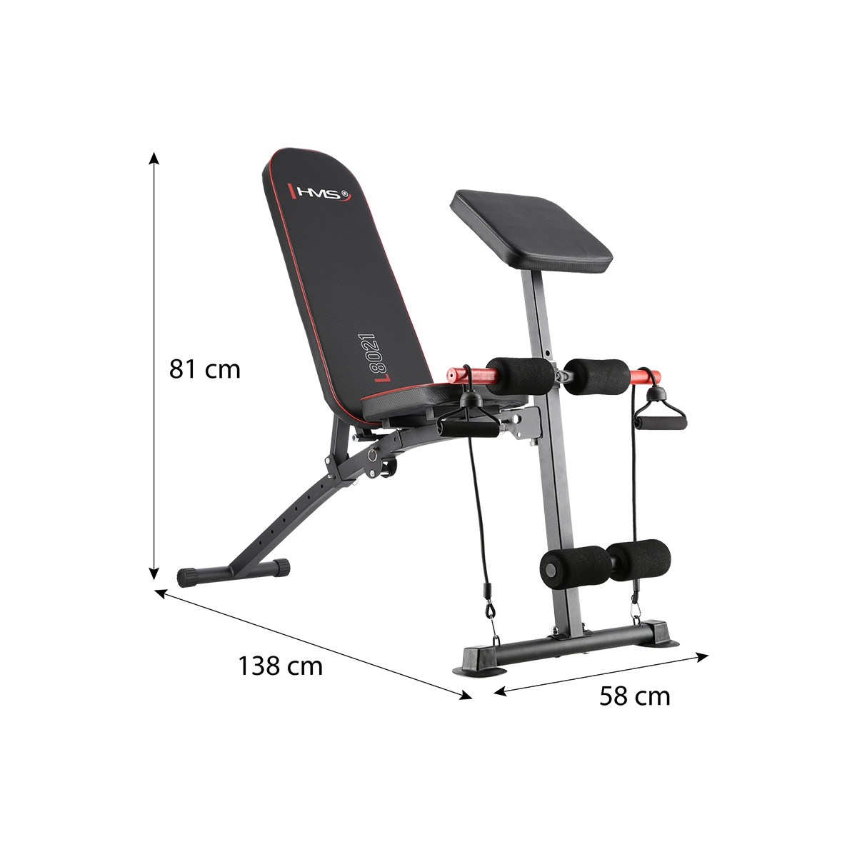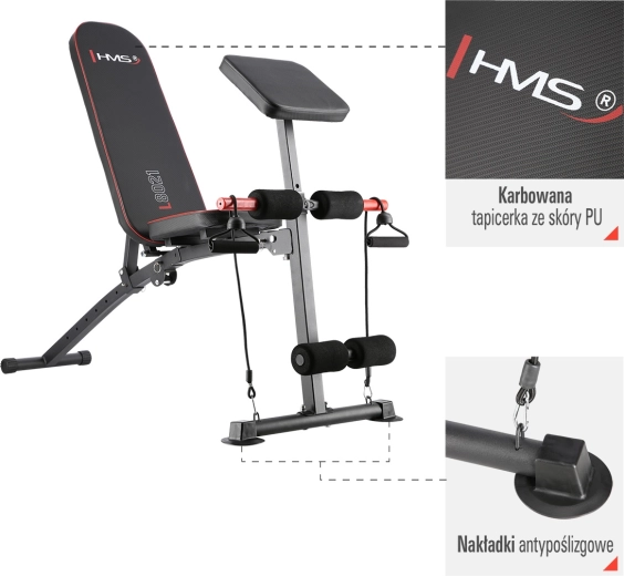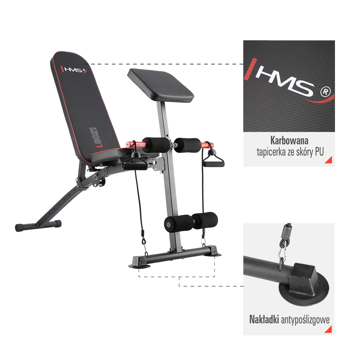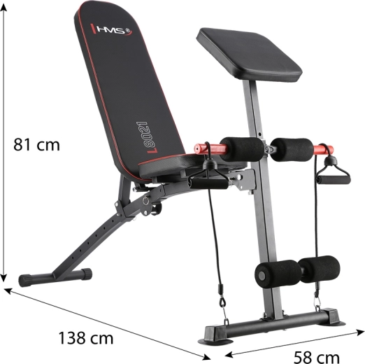HMS L8021 je promyšlená polohovatelná lavice pro efektivní domácí posilování bicepsů, tricepsů, hrudníku, břicha, zad, ramen i nohou. Díky širokému rozsahu nastavení zádové opěry od -20° do 90° snadno přizpůsobíte lavici klasickým benchovým cvikům, tlakovým a přítahovým variantám i břišním sklapovačkám. Modlitebník nastavitelný do 2 poloh podpoří precizní izolaci bicepsů.