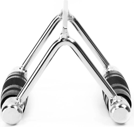 Robustní tělo z chromované oceli zaručuje dlouhou životnost a stabilitu i při těžkých sériích. Madlo je ideální pro přítahy spodní kladky, přitahování osy v landmine kloubu i přítahy s úzkým úchopem na kladkových strojích.