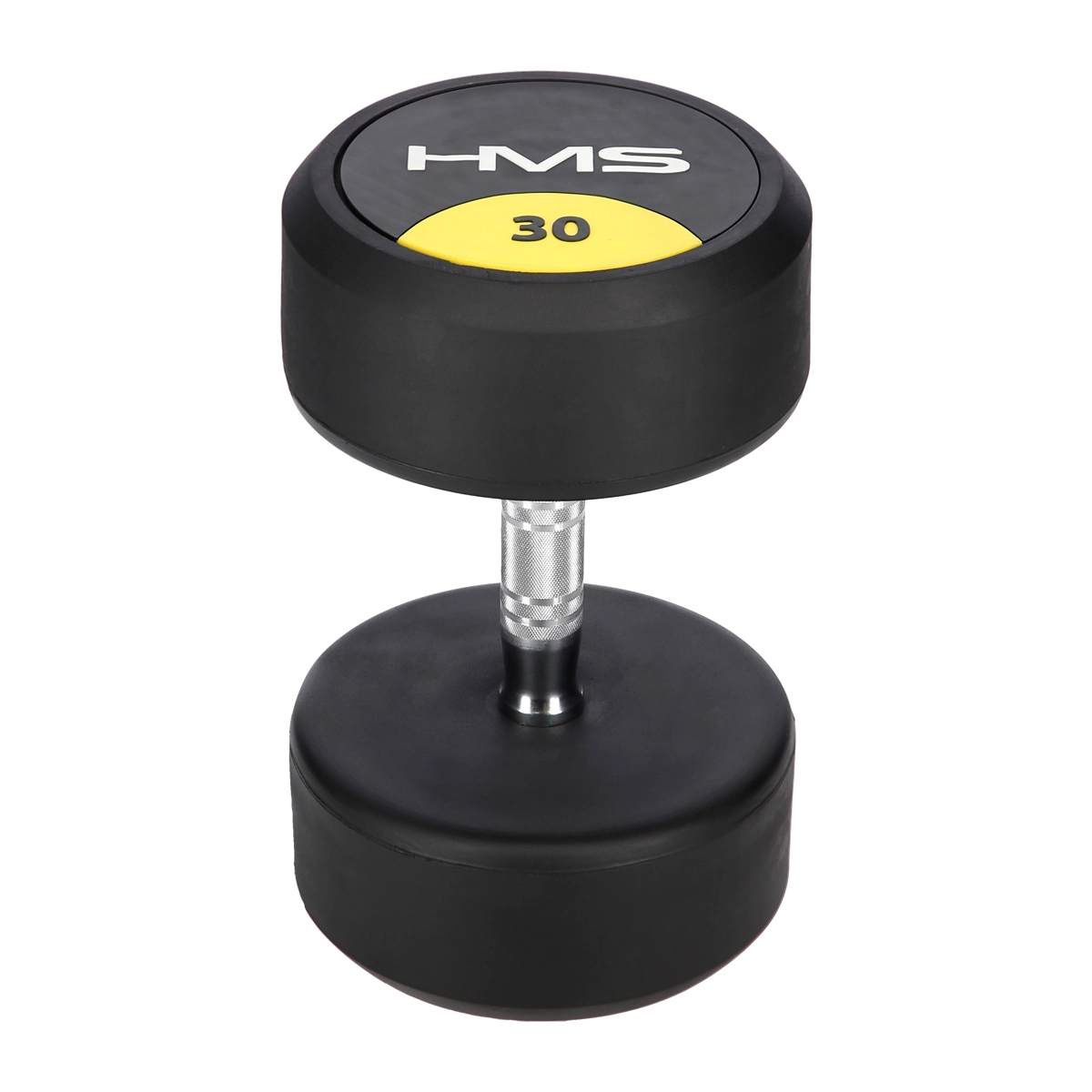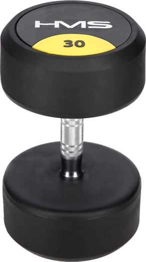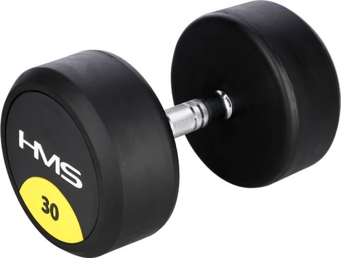Velké a dobře čitelné označení 30 kg a logo HMS na čele usnadňuje rychlý výběr správné činky ze stojanu.