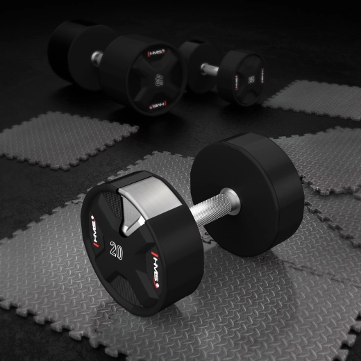 HMS HPC je prémiová polyuretanová jednoručka navržená pro maximální životnost a komfort. Odolný CPU povrch chrání činku před nárazy a opotřebením, zatímco chromovaná, rádlovaná rukojeť zajišťuje pevný a jistý úchop i při náročných sériích. Absence zápachu a snadná údržba dělají z činky skvělou volbu pro každodenní používání.
