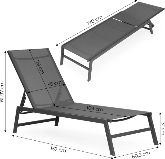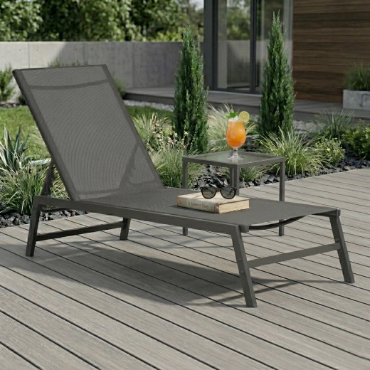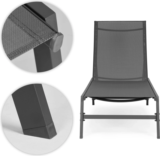 Užijte si pohodlí a styl při odpočinku na zahradě, terase nebo u bazénu. Toto šedé lehátko kombinuje minimalistický design s dlouhou životností a snadnou údržbou. Prodyšná síťovina rychle schne a přizpůsobí se tělu, ocelový rám s práškovým lakem zajišťuje odolnost vůči povětrnostním vlivům.