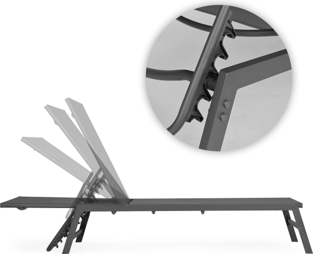 Jednoduchý mechanismus vám umožní zvolit si ideální polohu – od pohodlného sezení po úplné ležení pro slunění a odpočinek celého těla.