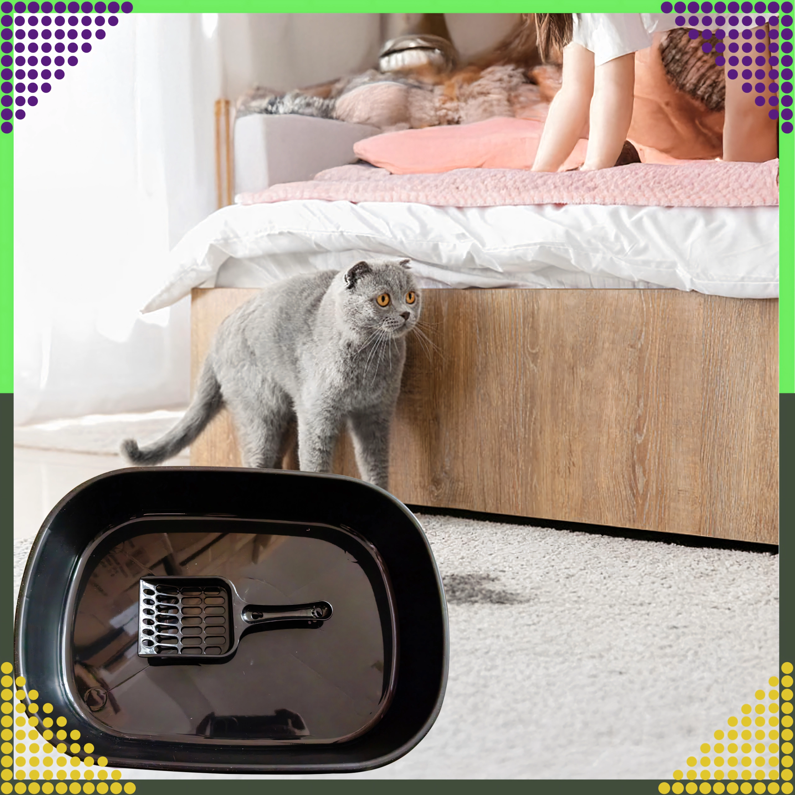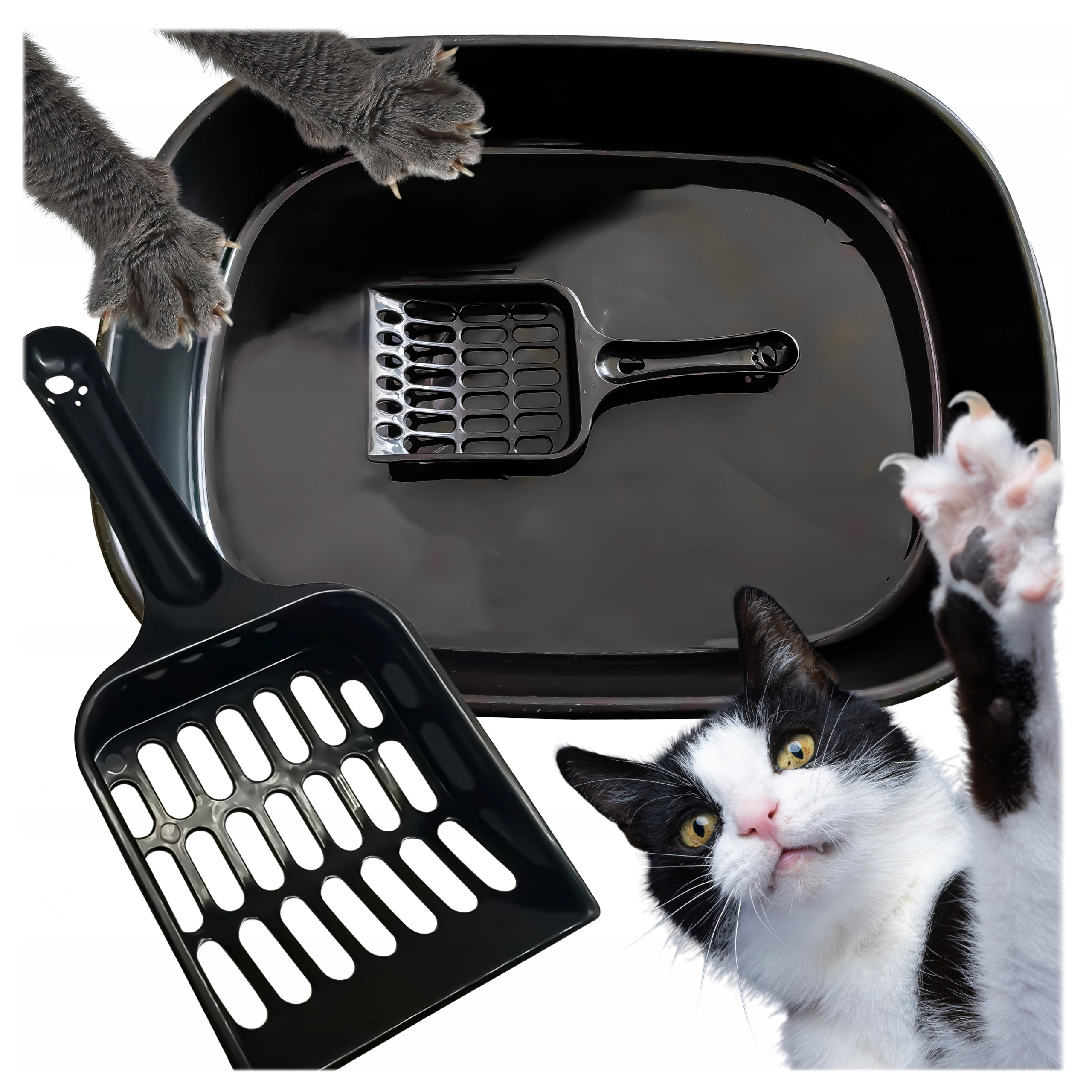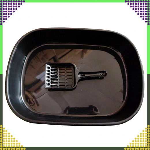 Praktická otevřená kočičí toaleta s lopatkou v elegantní černé barvě. Díky kompaktním rozměrům a zaoblenému tvaru se snadno vejde do každé místnosti, je bezpečná a vyrobená z netoxického plastu. Hladký povrch a oddělené dno zajišťují rychlé čištění a výměnu steliva.