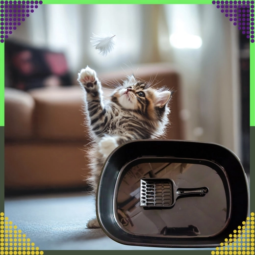 Toaleta je vyrobena z kvalitního, netoxického plastu, který je odolný, hygienický a snadno omyvatelný. Oddělené dno a přiložená lopatka s otvory umožňují rychlé prosívání a odstranění hrudek, takže údržba je jednoduchá a čistá.