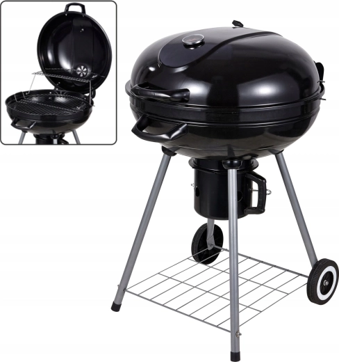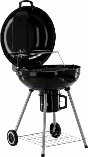 Užijte si autentickou chuť grilování s kulatým grilem na dřevěné uhlí, který nabízí emajlované topeniště, integrovaný termometr ve víku, velký chromovaný rošt a praktický popelník. Díky kolečkům pro snadné přemístění a stabilní konstrukci je perfektní volbou pro zahradu, terasu i piknik.
