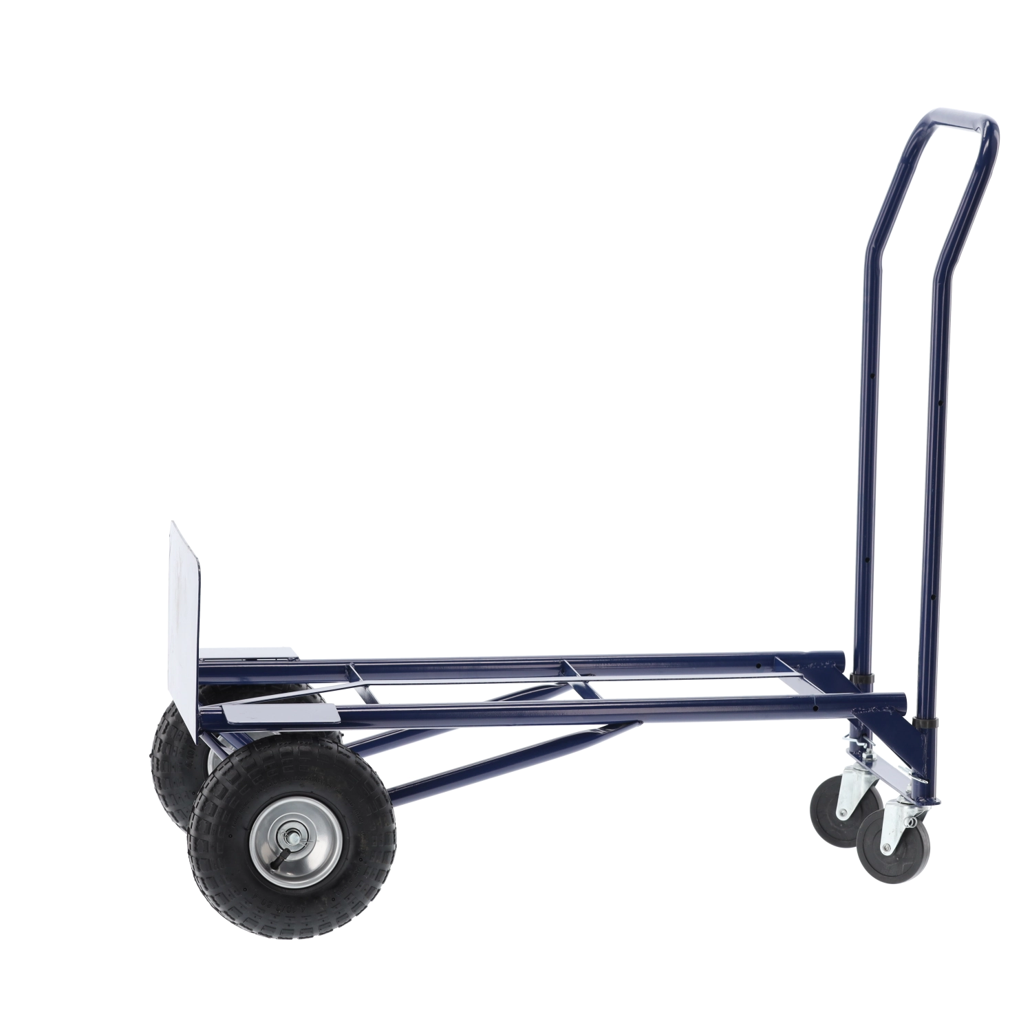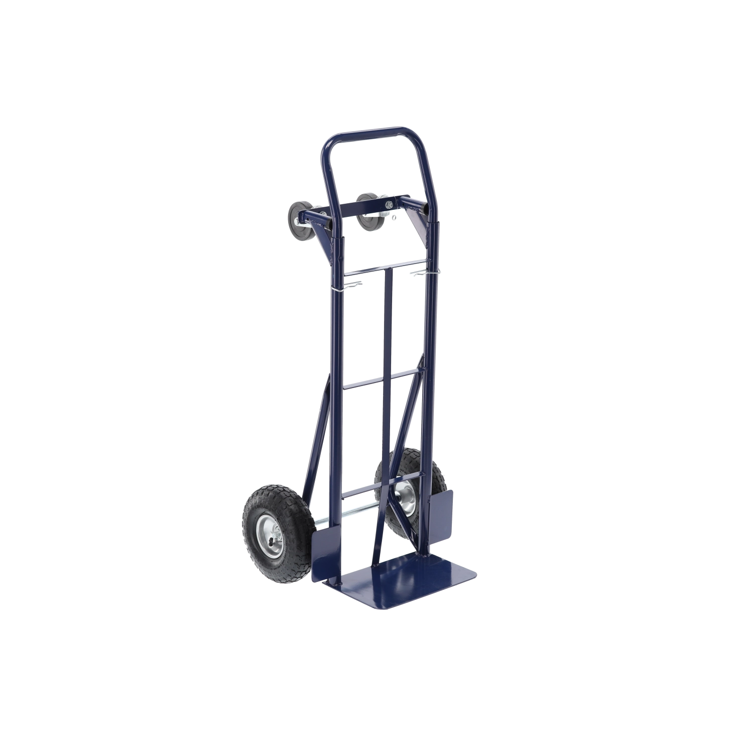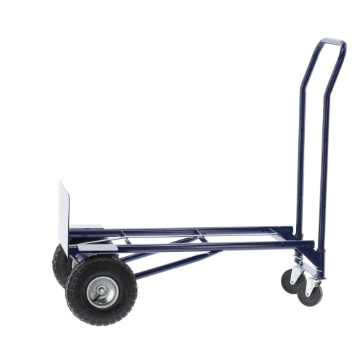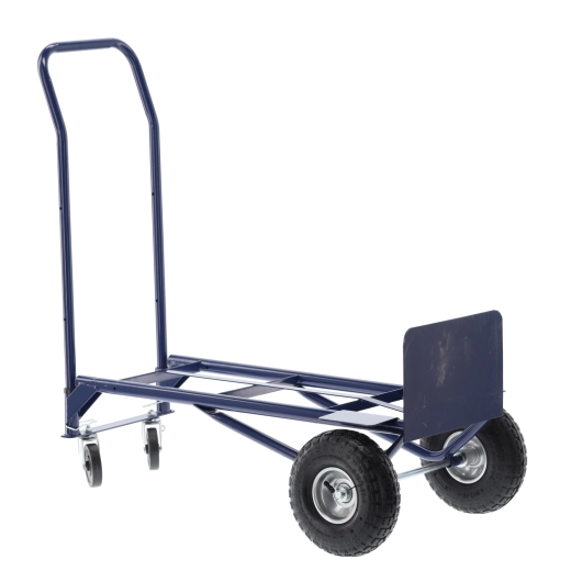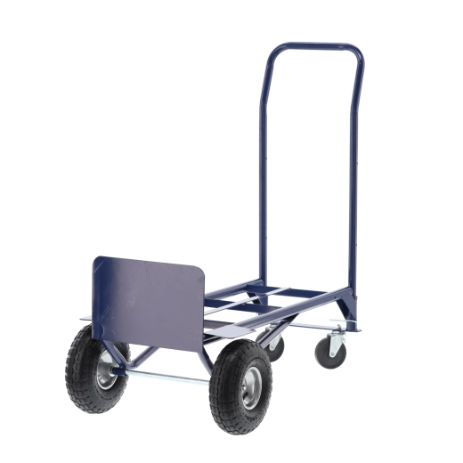 Praktický pomocník pro sklady, dílny i domácnosti. Pevný ocelový rám, kvalitní gumová/pneumatická kola a jednoduchá přestavba mezi dvěma režimy šetří čas i námahu. Vozík je stabilní, snadno ovladatelný a navržený pro časté používání.