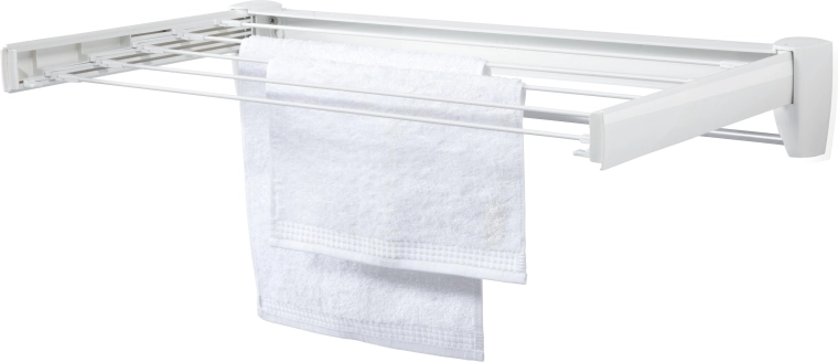 Sušák se plynule vysune, když potřebujete sušit, a po použití se zasune zpět ke zdi. Ideální do menších koupelen a úzkých prostor.
