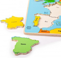 Objevujte Evropu hravou formou s dřevěným puzzle od Bigjigs Toys. Barevná mapa s 25 dílky pomáhá dětem lépe porozumět, jak jsou evropské země propojené, a přirozeně rozvíjí geografické i obecné znalosti. Vyrobeno z kvalitního dřeva a v souladu s evropskými bezpečnostními normami.