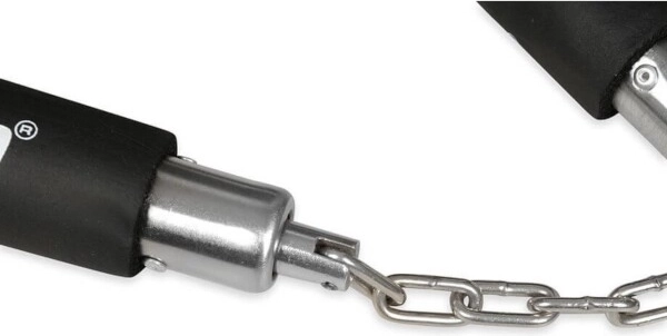 Ložiskové uchycení ocelových válečků v kombinaci se svařovaným řetězem nabízí plynulý chod a dlouhou životnost i při intenzivním použití. Vyvážené rozměry a nízká hmotnost 280 g usnadňují manipulaci, rychlé přechody a přesné provedení úderů či bloků.
