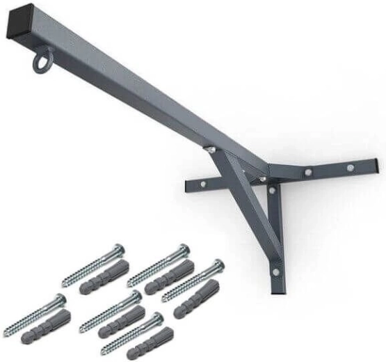 Instalace je jednoduchá – držák má vícenásobné montážní otvory pro pevné uchycení do zdi a součástí je i montážní sada. S hloubkou 60 cm a délkou ramene 102 cm poskytne pytli dostatečný prostor pro švih a bezpečné odstupy od zdi.