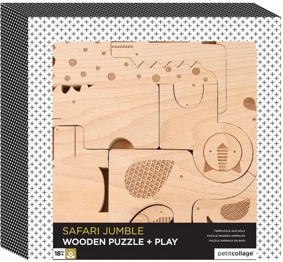Dřevěné zvířecí puzzle Safari od PETIT COLLAGE nadchne děti v každé fázi vývoje. Dílky mohou malí objevitelé ukládat do dřevěného rámečku nebo je volně skládat a stavět na sebe – hra tak rozvíjí nejen motoriku a koordinaci oko–ruka, ale i kreativitu a trpělivost.