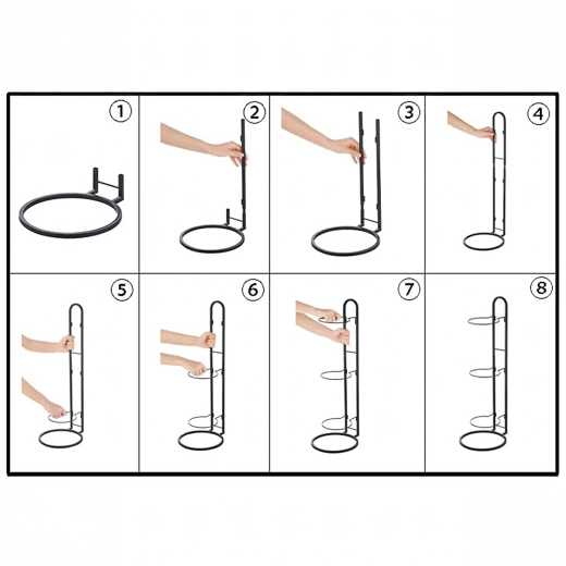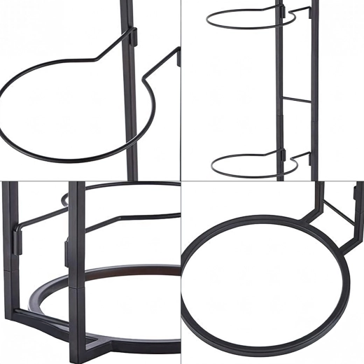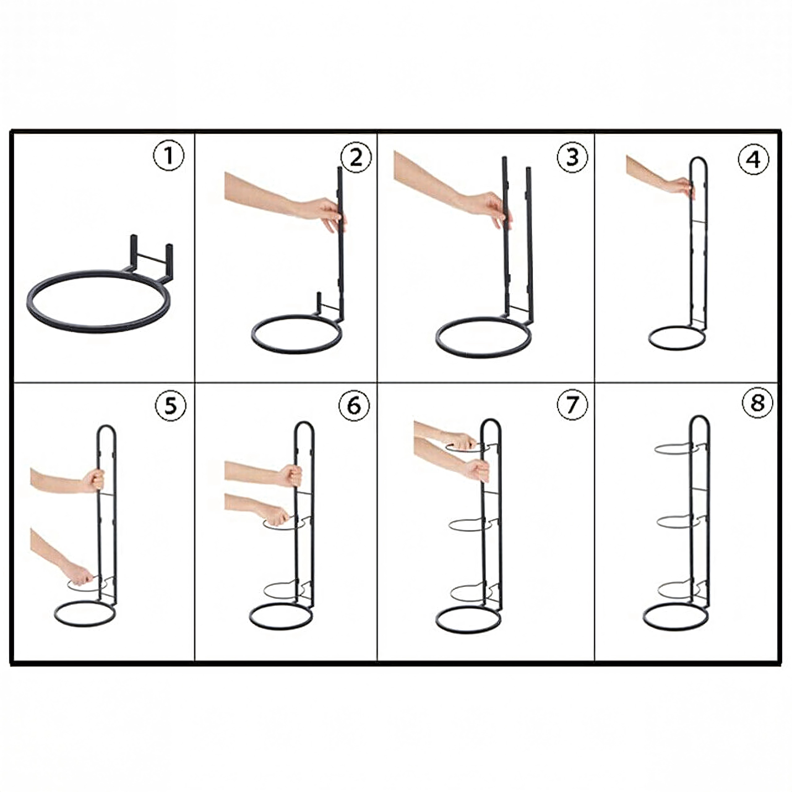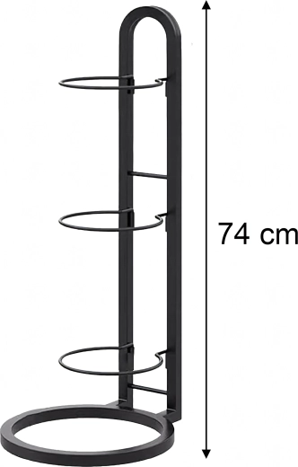 Minimalistický design v černé barvě snadno zapadne do moderních interiérů. Stojan je vhodný pro běžné velikosti sportovních míčů (basketbal, fotbal, volejbal) a umožňuje rychlé odkládání i vyjímání jednou rukou.