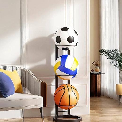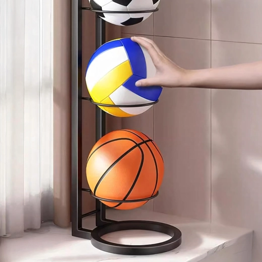 Udržte sportovní vybavení na jednom místě díky elegantnímu stojanu na míče. Tento vertikální organizér nabízí úsporu místa, rychlý přístup a stabilní kovovou konstrukci pro bezpečné uložení basketbalového, fotbalového či volejbalového míče.