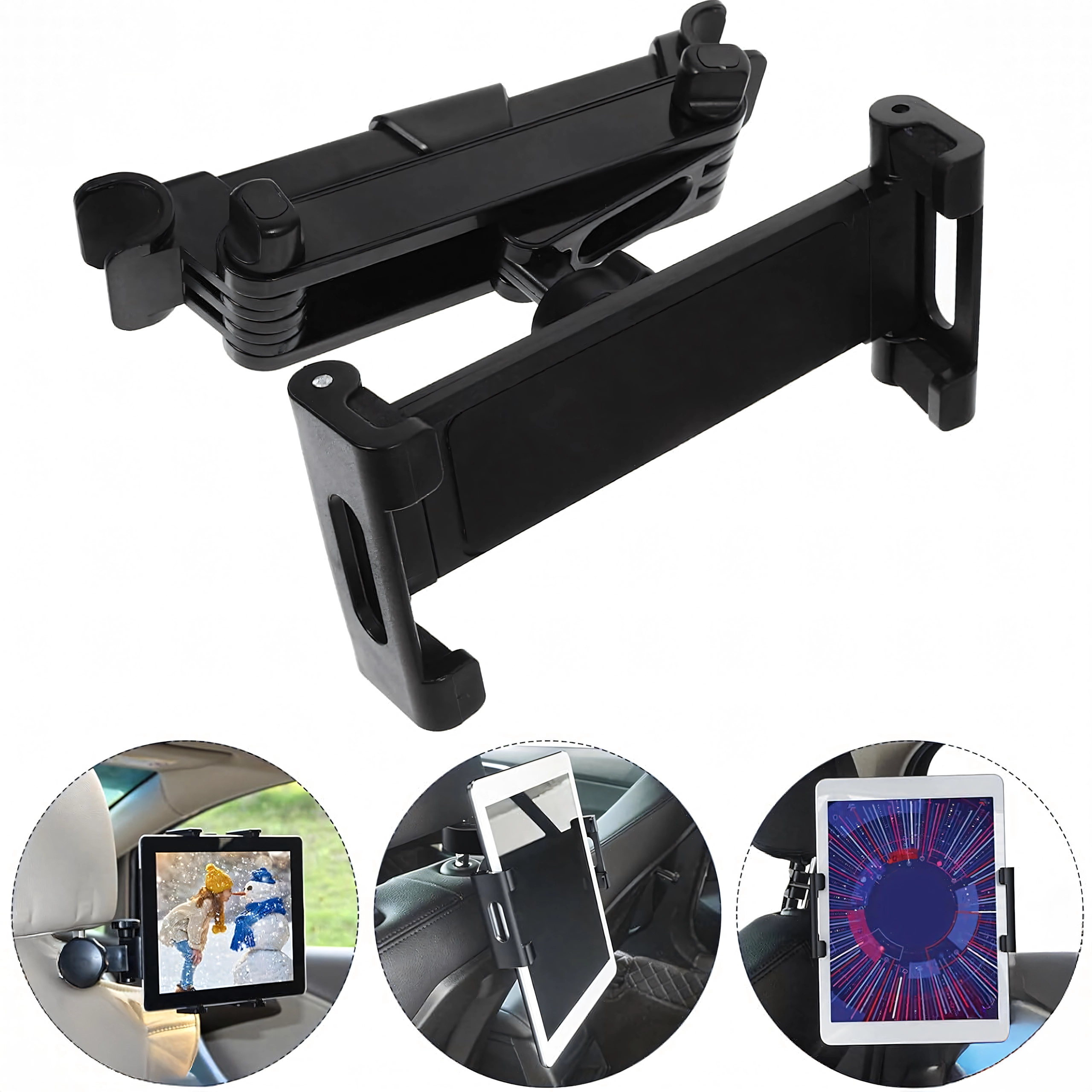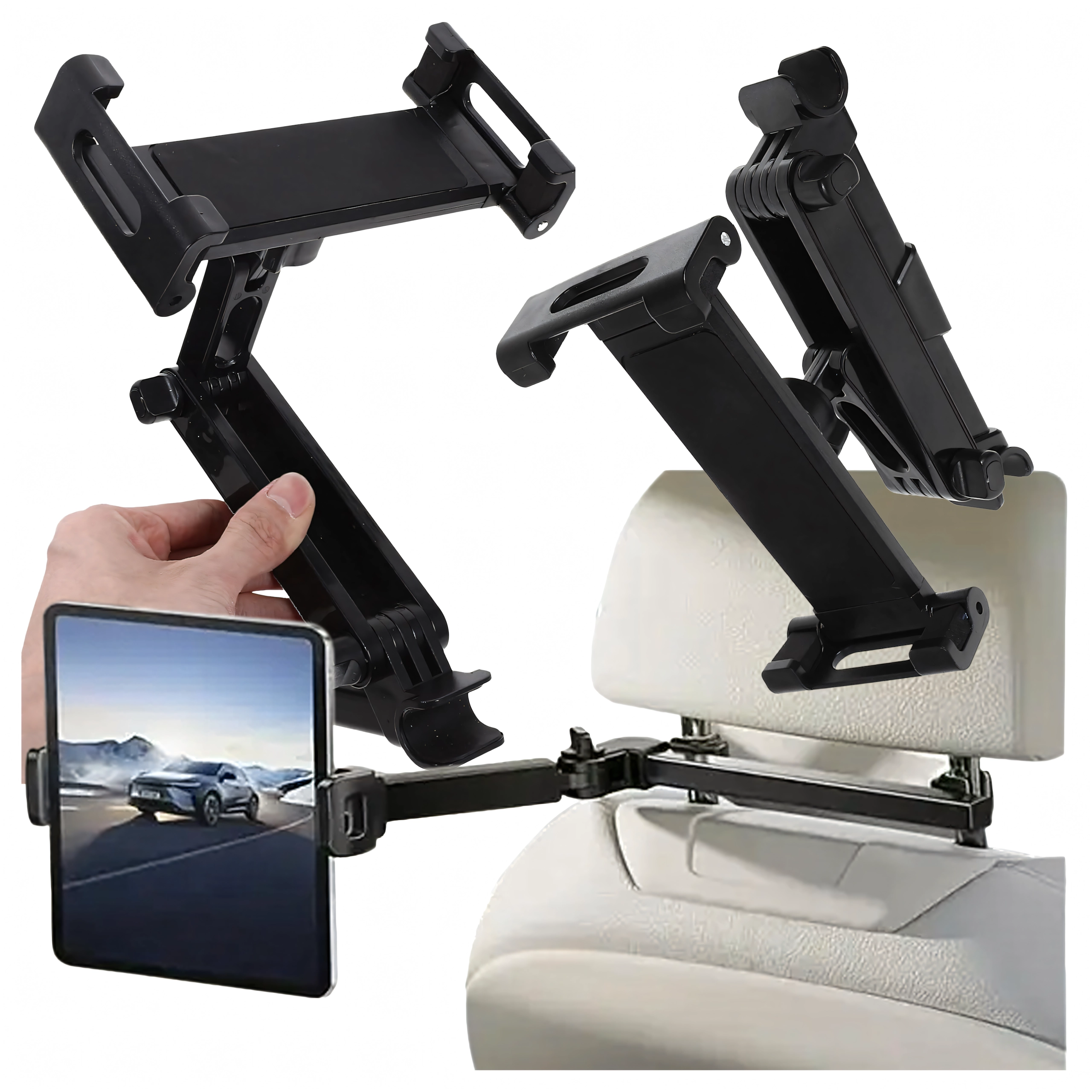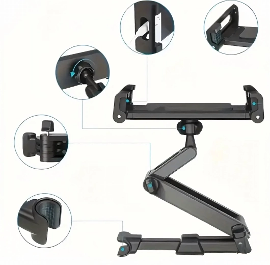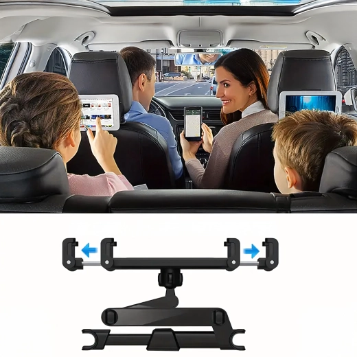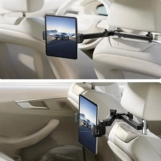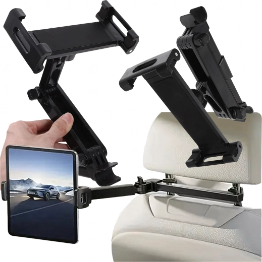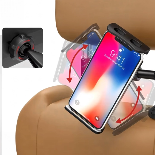Univerzální držák na opěrku hlavy promění zadní sedadla v multimediální koutek. Díky kloubové konstrukci a kulovému čepu nabízí otáčení o 360°, širokou kompatibilitu s telefony i tablety a pevné uchycení bez chvění – ideální pro filmy, hry i učení na cestách.