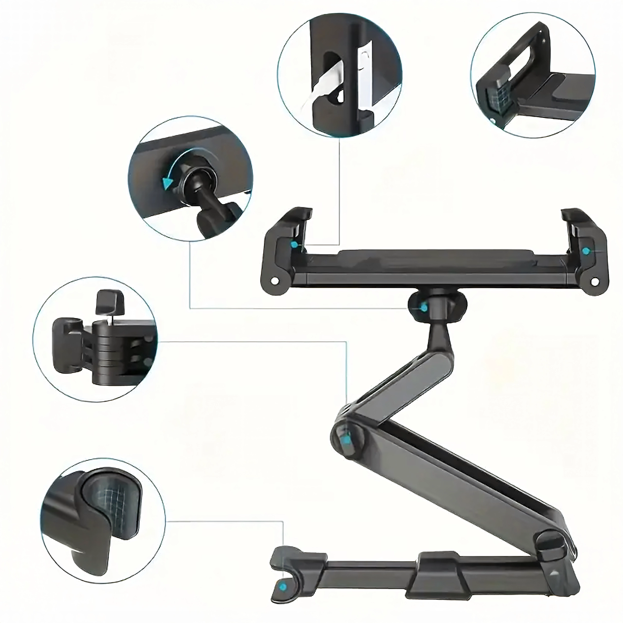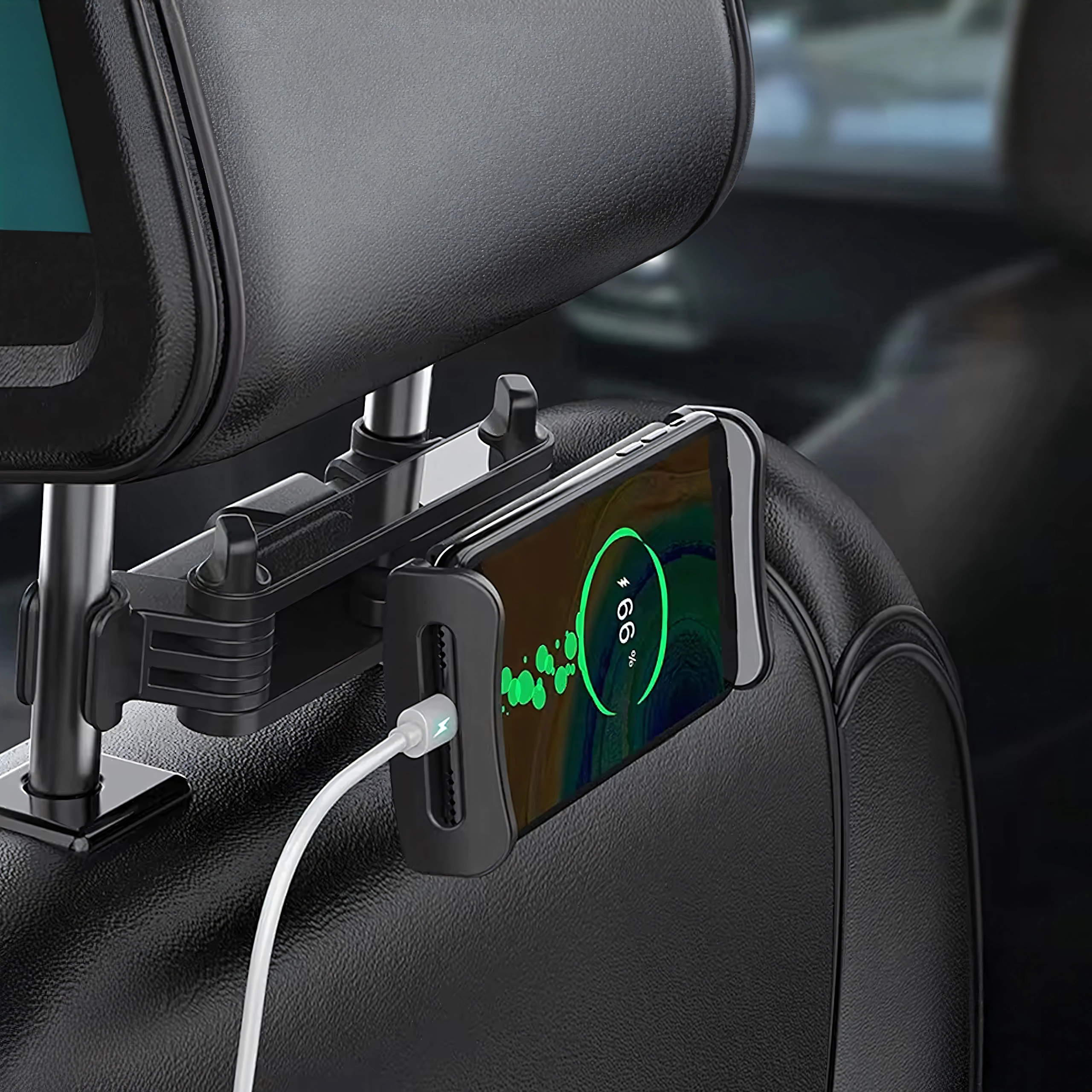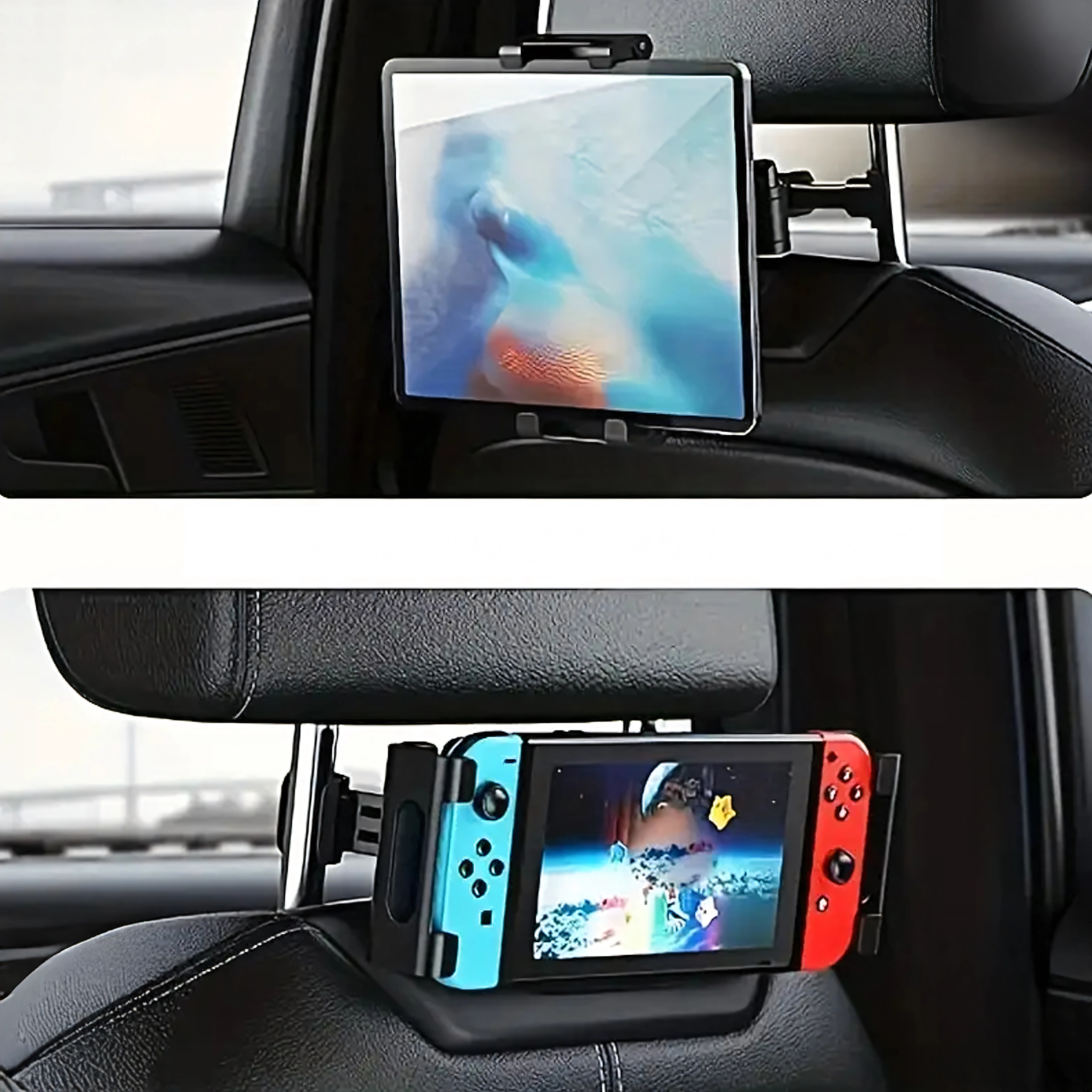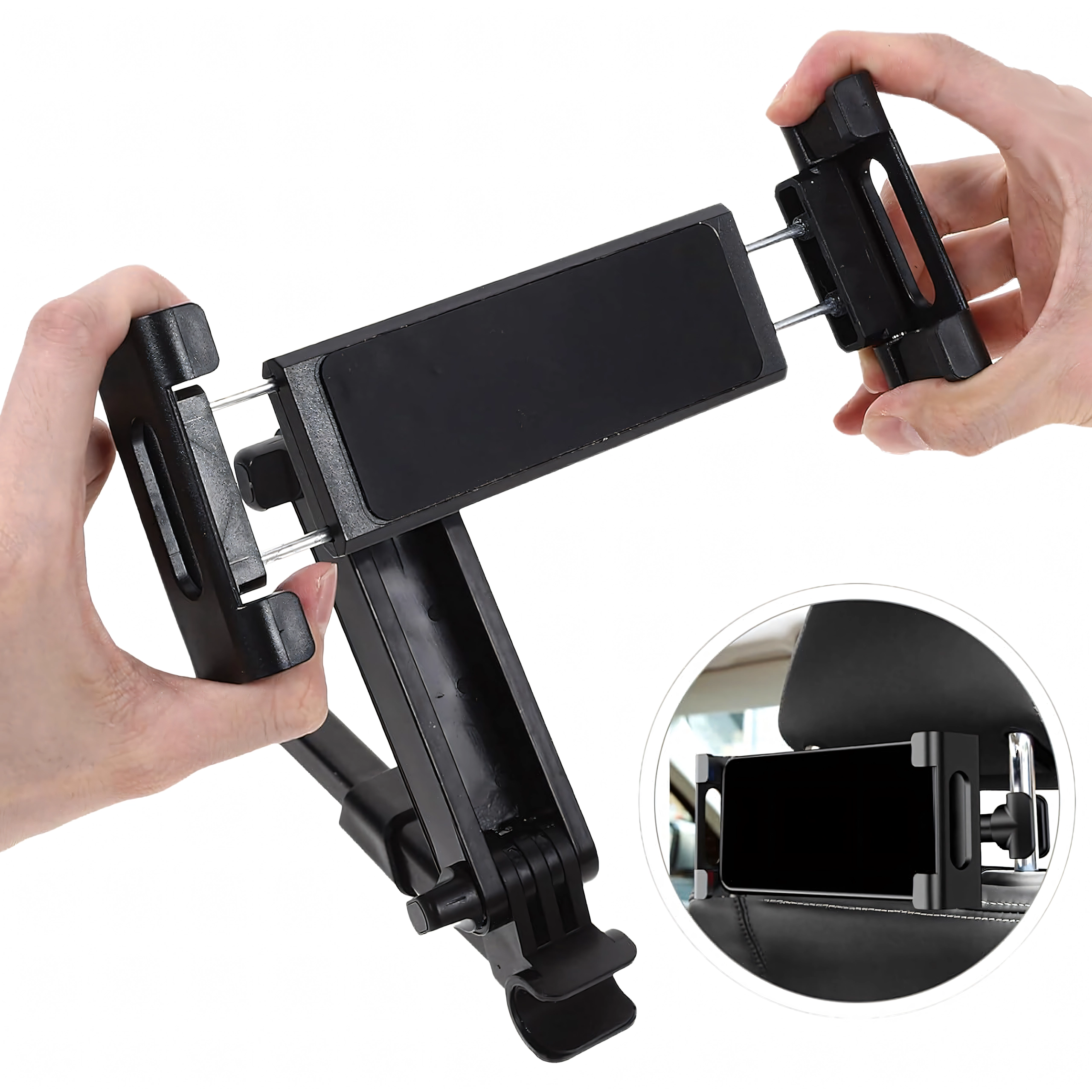 Univerzální držák na opěrku hlavy promění zadní sedadla v multimediální koutek. Díky kloubové konstrukci a kulovému čepu nabízí otáčení o 360°, širokou kompatibilitu s telefony i tablety a pevné uchycení bez chvění – ideální pro filmy, hry i učení na cestách.