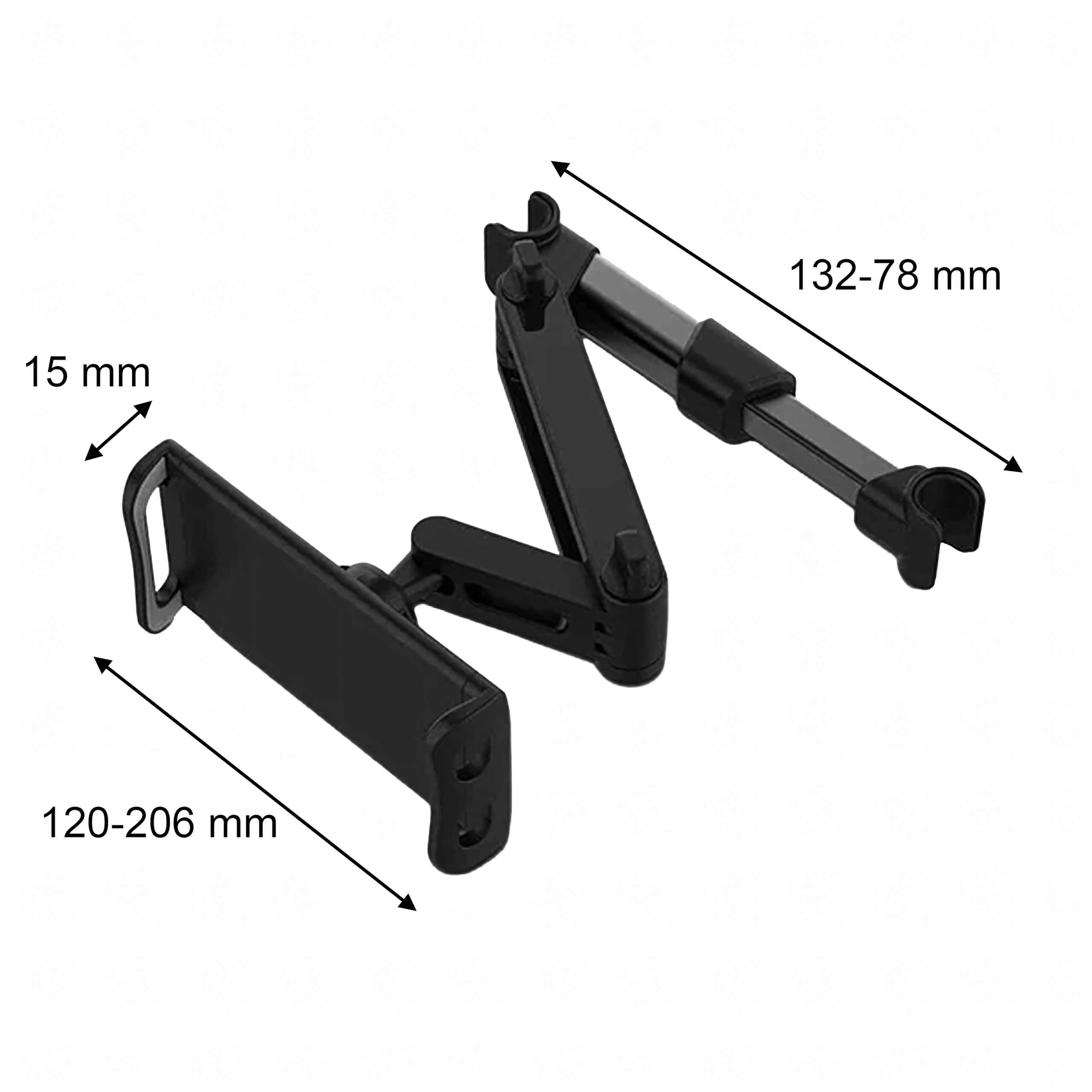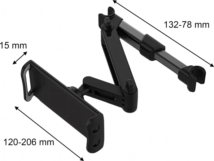 Užijte si klidné jízdy a zábavu pro cestující. Robustní držák se upevňuje mezi tyče opěrky hlavy a díky nastavitelným ramenům bezpečně pojme většinu telefonů a tabletů. Měkké výstelky chrání zařízení před poškrábáním, zatímco aretační šrouby udrží stabilní polohu i na nerovnostech.
