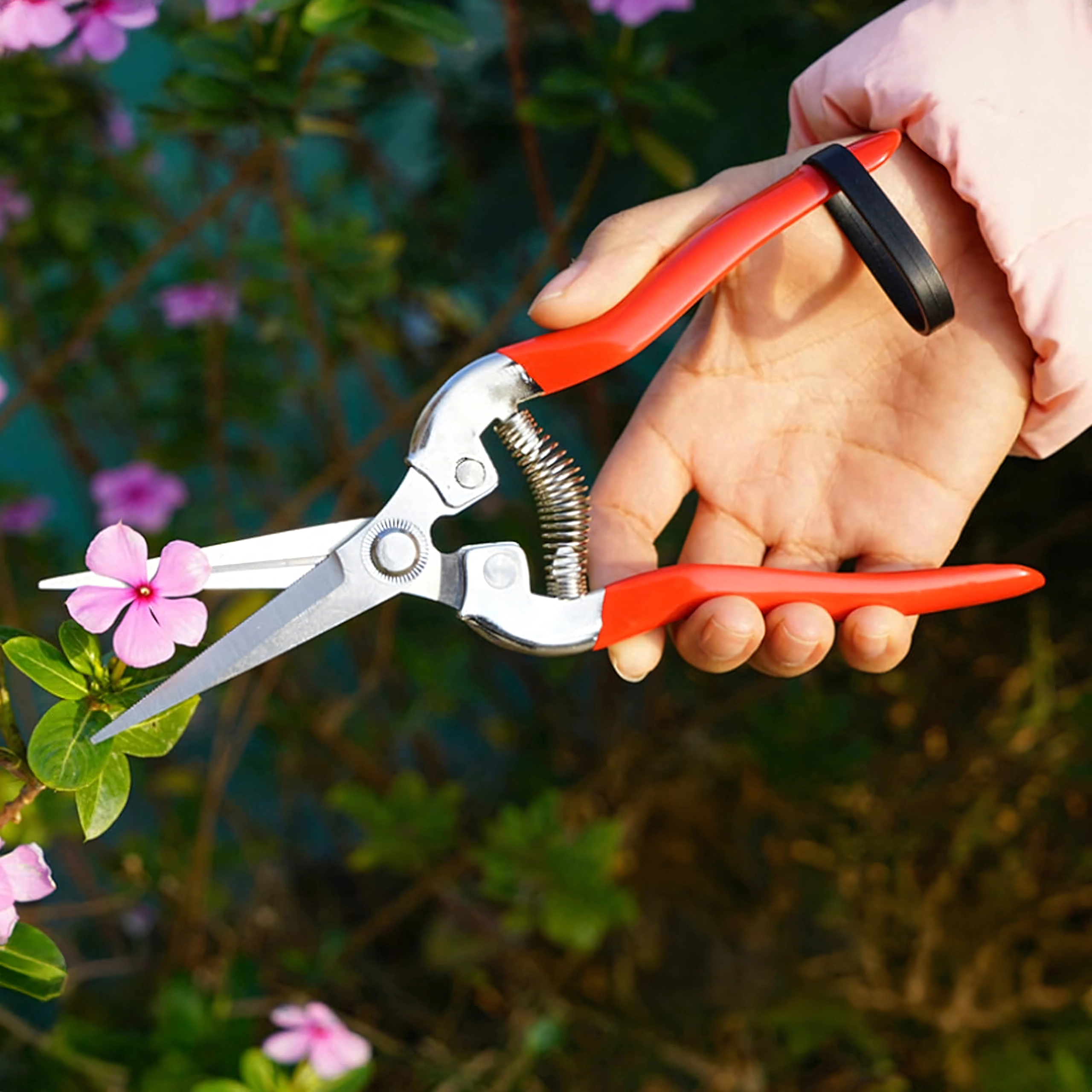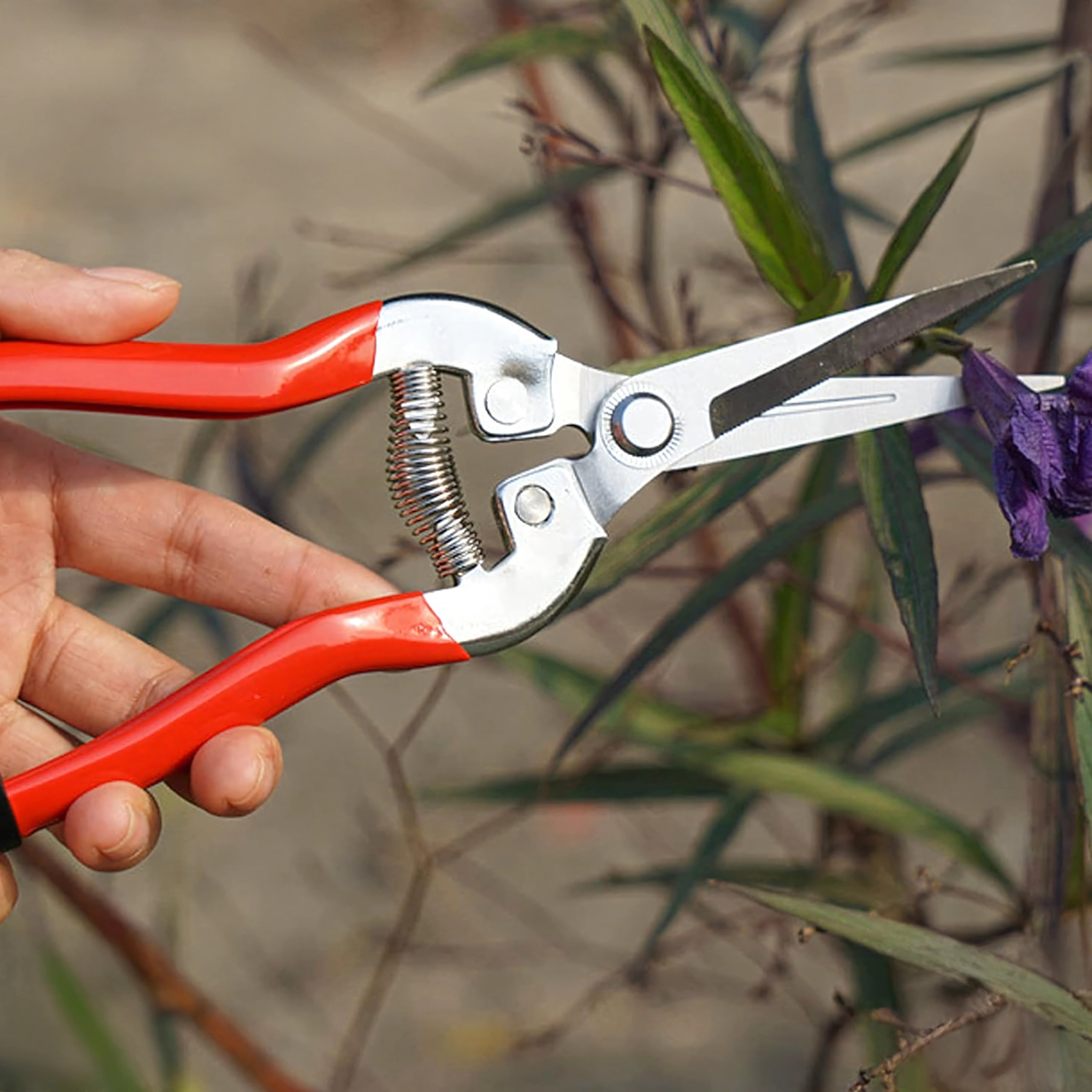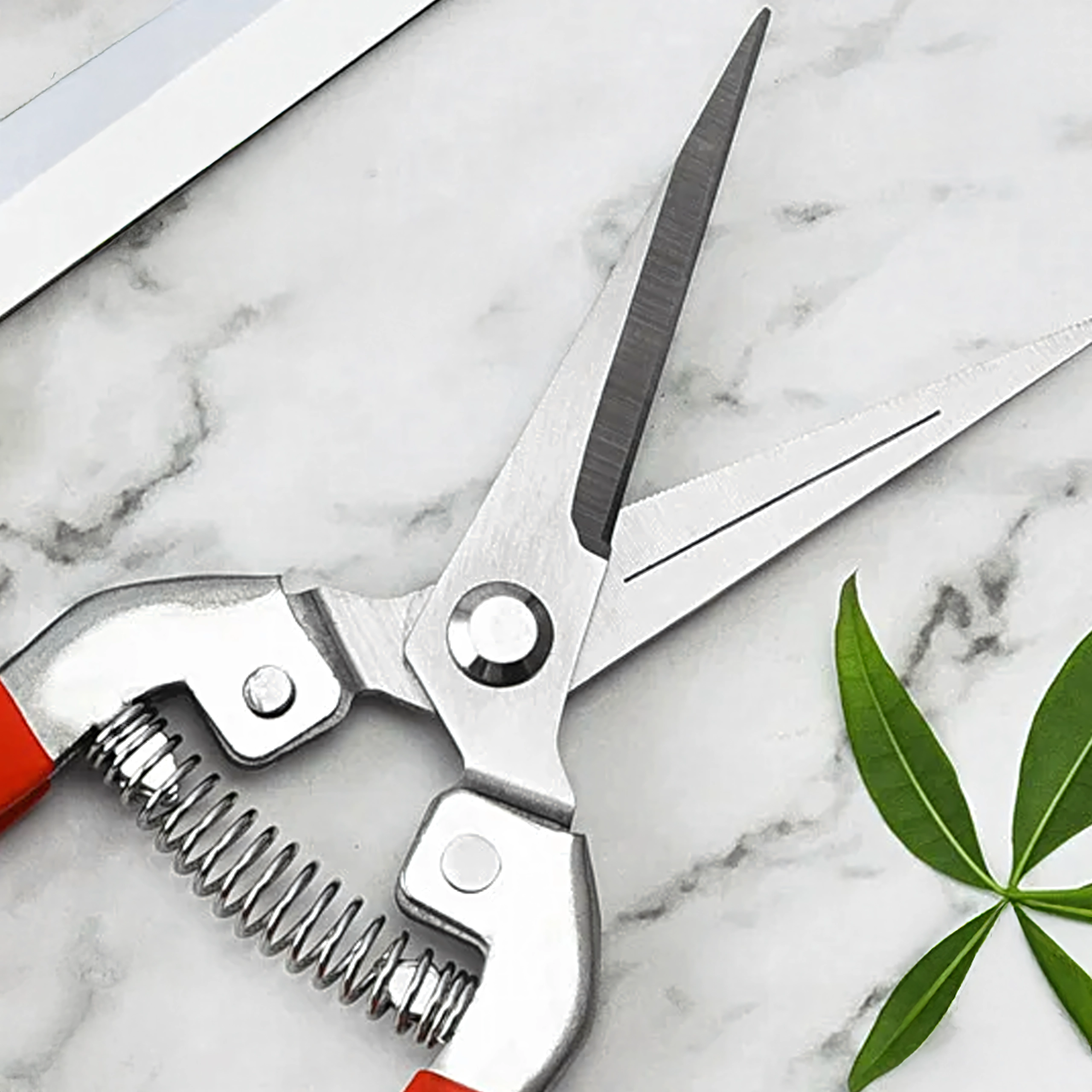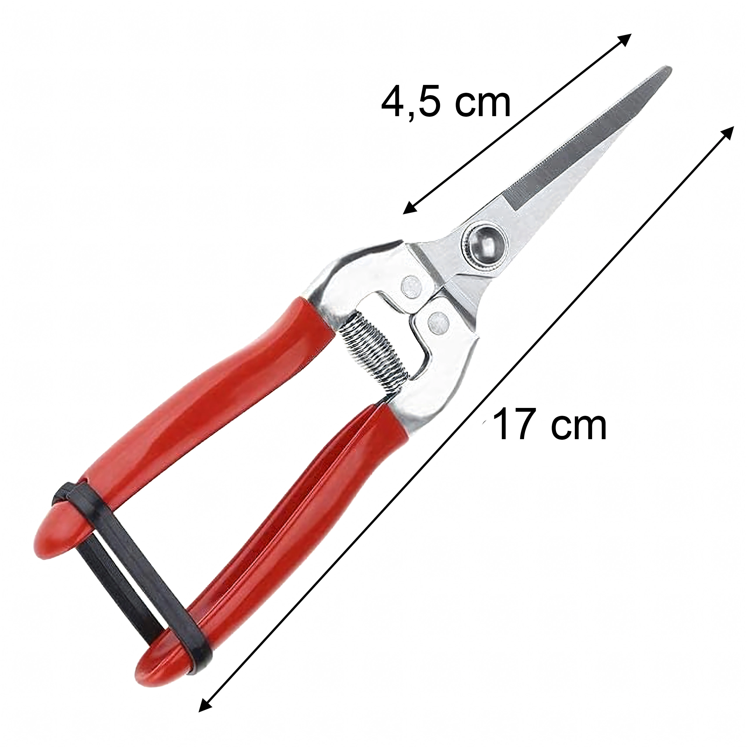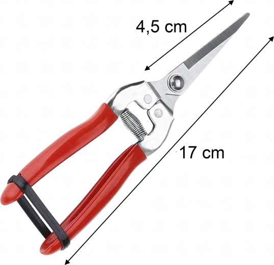 - Přesný střih: úzké nerezové čepele pro čisté řezy stonků a jemných větviček.