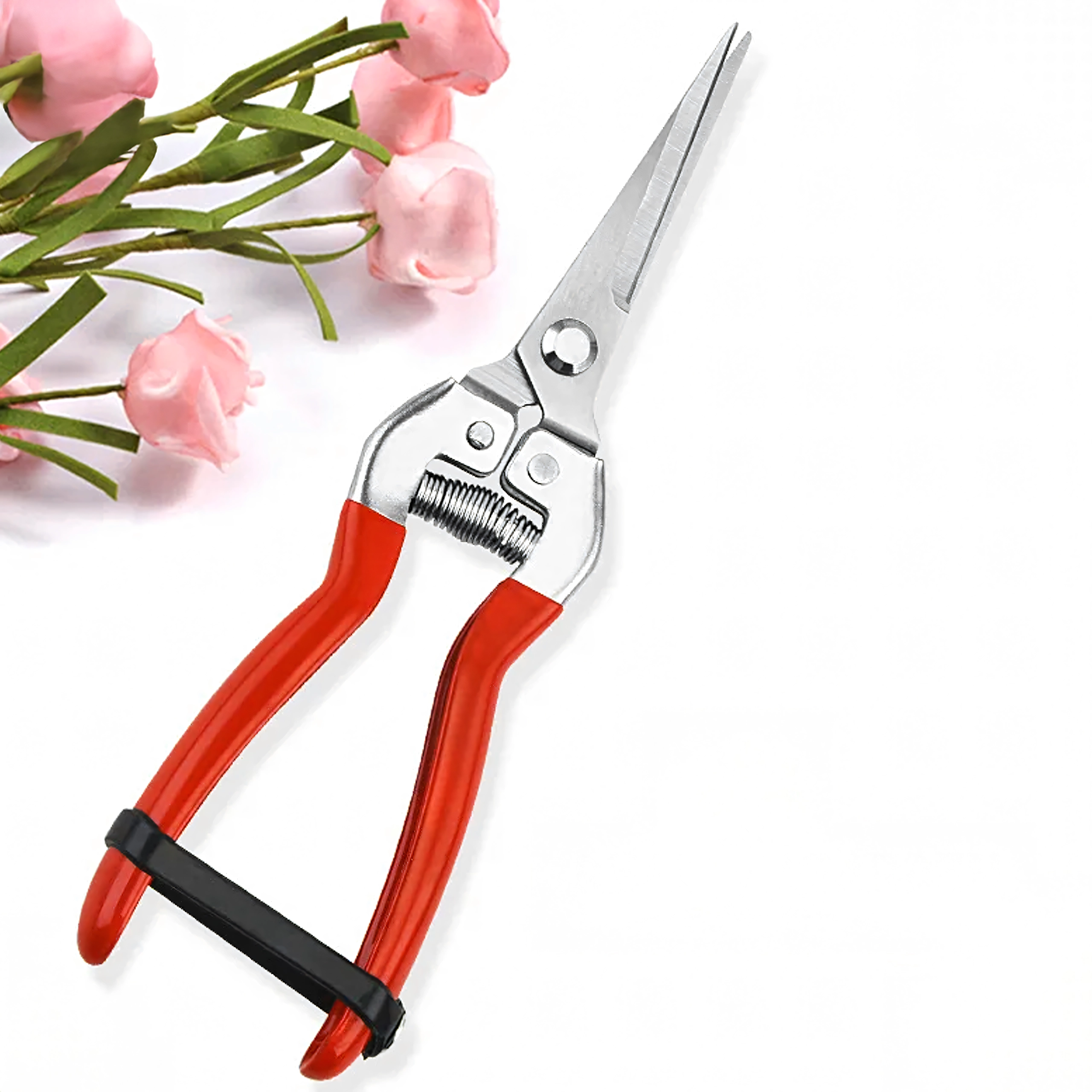 Tyto kompaktní zahradní nůžky jsou ideální pro každodenní údržbu rostlin, tvarování keřů a přesné zastřihování květin. Dlouhé, úzké čepele z nerezové oceli umožňují čisté a přesné řezy i na hůře dostupných místech, zatímco pružinové otevírání šetří sílu při opakovaných střizích.