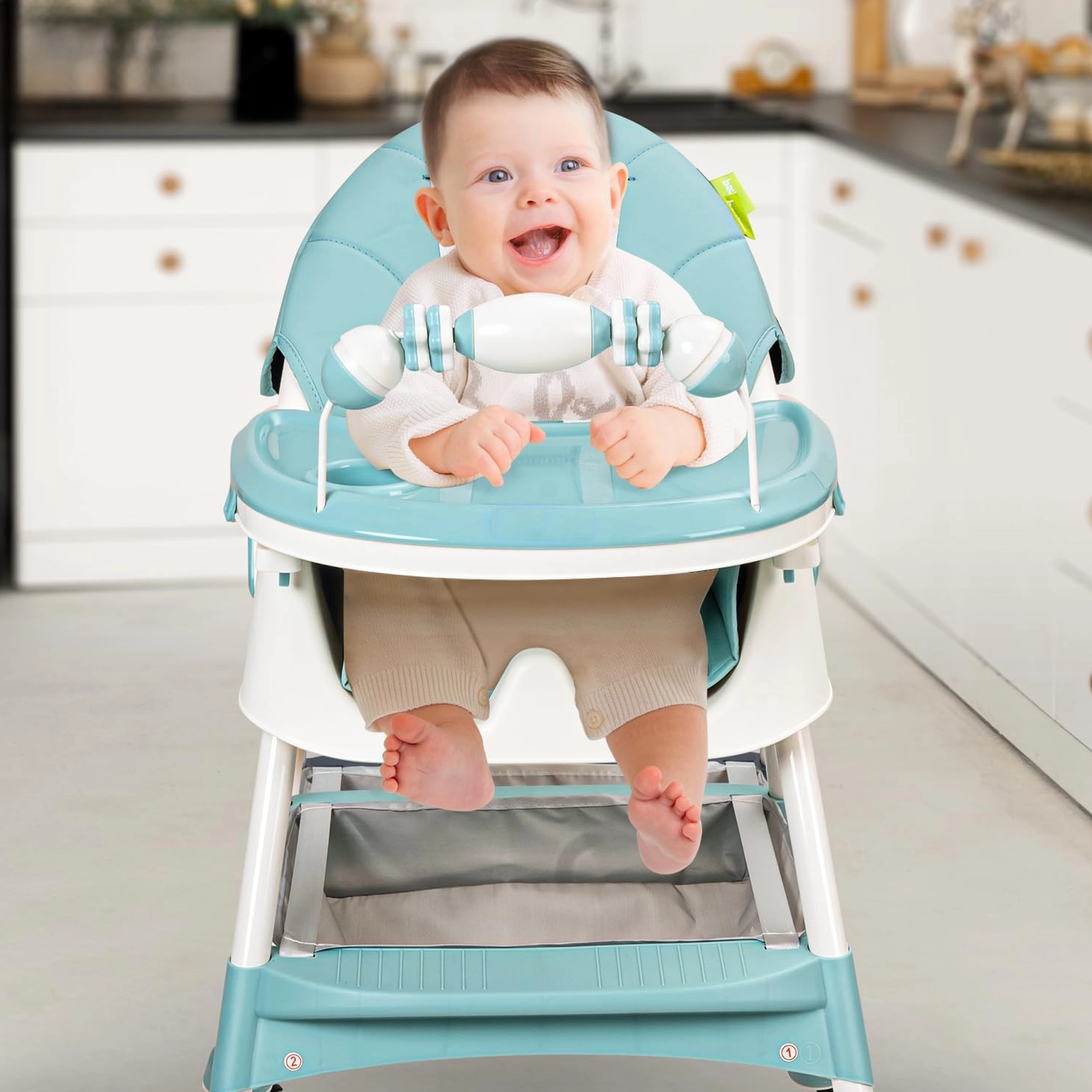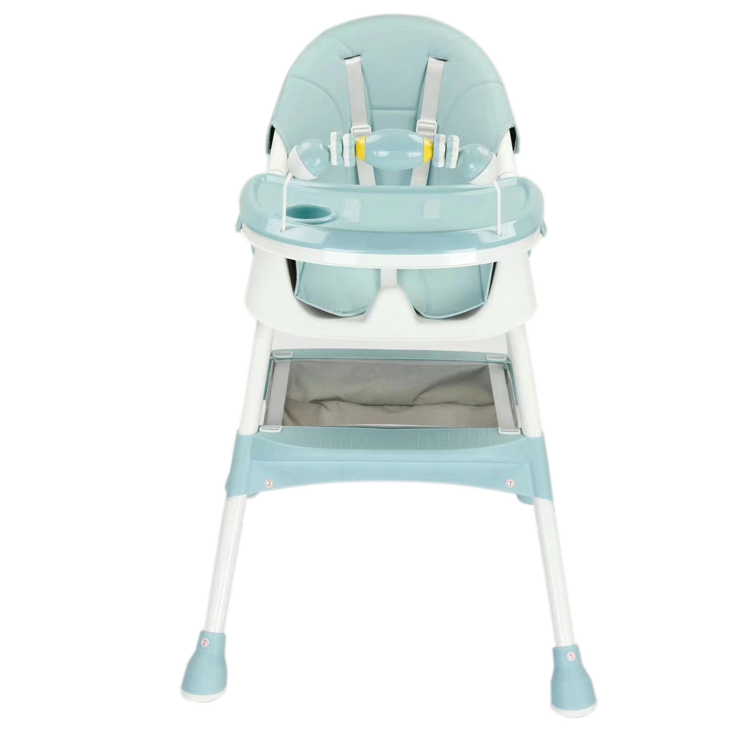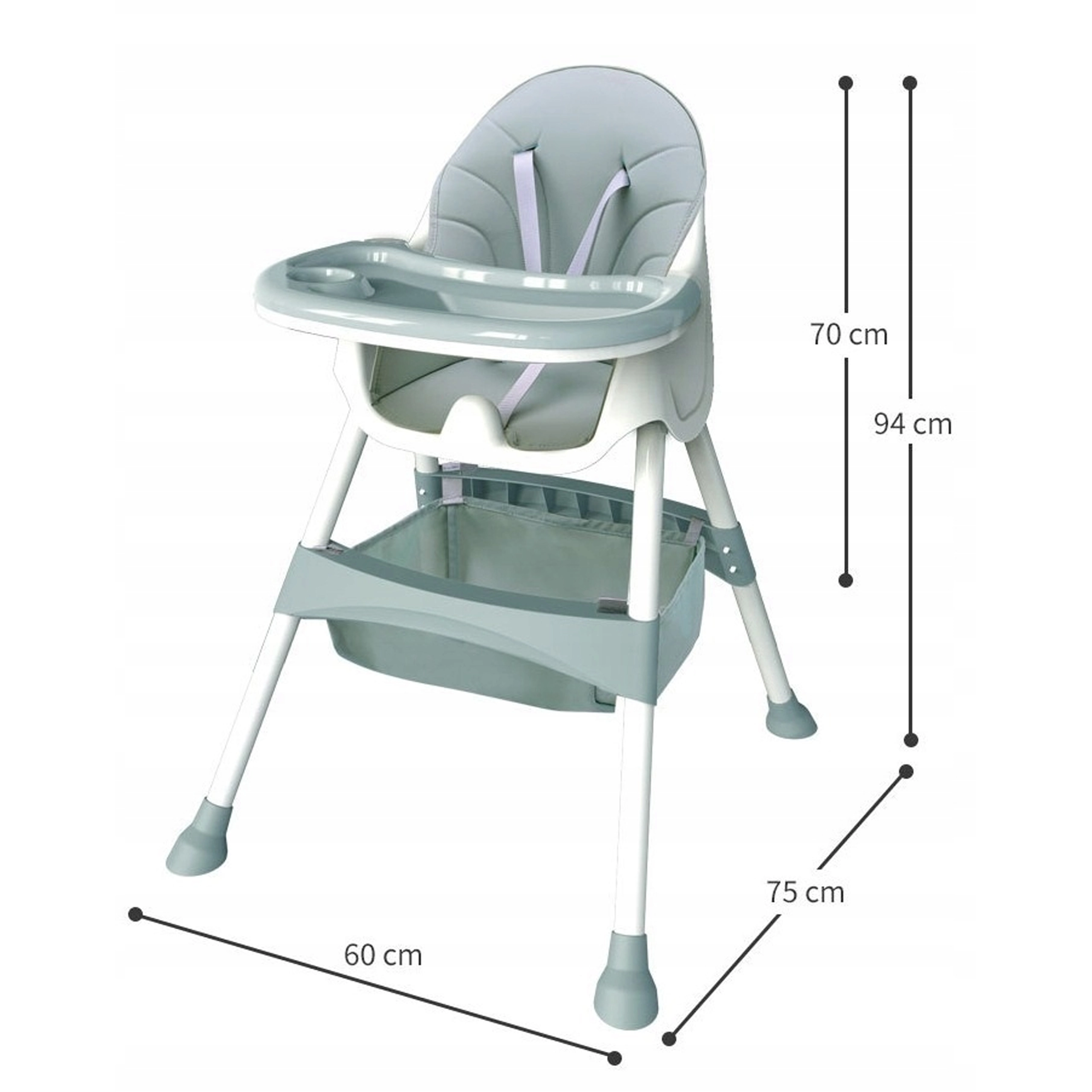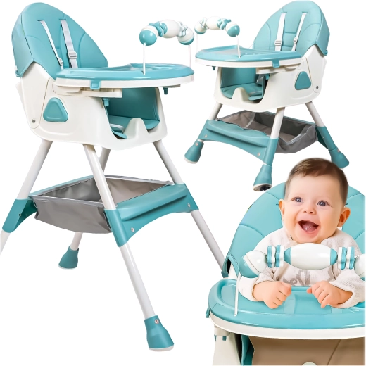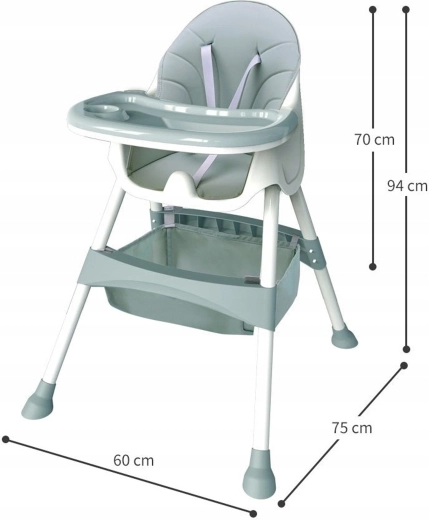 Praktická a lehká dětská jídelní židlička 3v1 roste spolu s dítětem od cca 6 měsíců. Nabízí dvě výškové úrovně, odnímatelný jídelní pultík s držákem na hrnek, pohodlné polstrování a 5bodový bezpečnostní pás. Stabilní nohy s protiskluzovými krytkami a úložný koš pod sedadlem zajišťují bezpečné a pohodlné stolování i hraní.