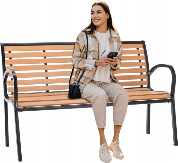 Tato stylová lavice kombinuje práškově lakovaný ocelový rám se sedákem a opěrkou z plastových lamel v dekoru dřeva. Nabízí příjemné sezení, dlouhou životnost a minimální nároky na údržbu – stačí otřít a je připravená k dalšímu použití. Hnědé lamely působí přirozeně a dodají vašemu exteriéru teplý, útulný vzhled.