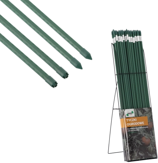 Odolná zahradní tyč z oceli s povrchovou úpravou PE je skvělou volbou pro popínavky, jemné květiny, ovocné a zeleninové rostliny i mladé keře. Zelený povrch ladí s okolními rostlinami a nenarušuje vzhled záhonu. Integrované výstupky po celé délce zajišťují jisté uchycení stonků bez sklouzávání.