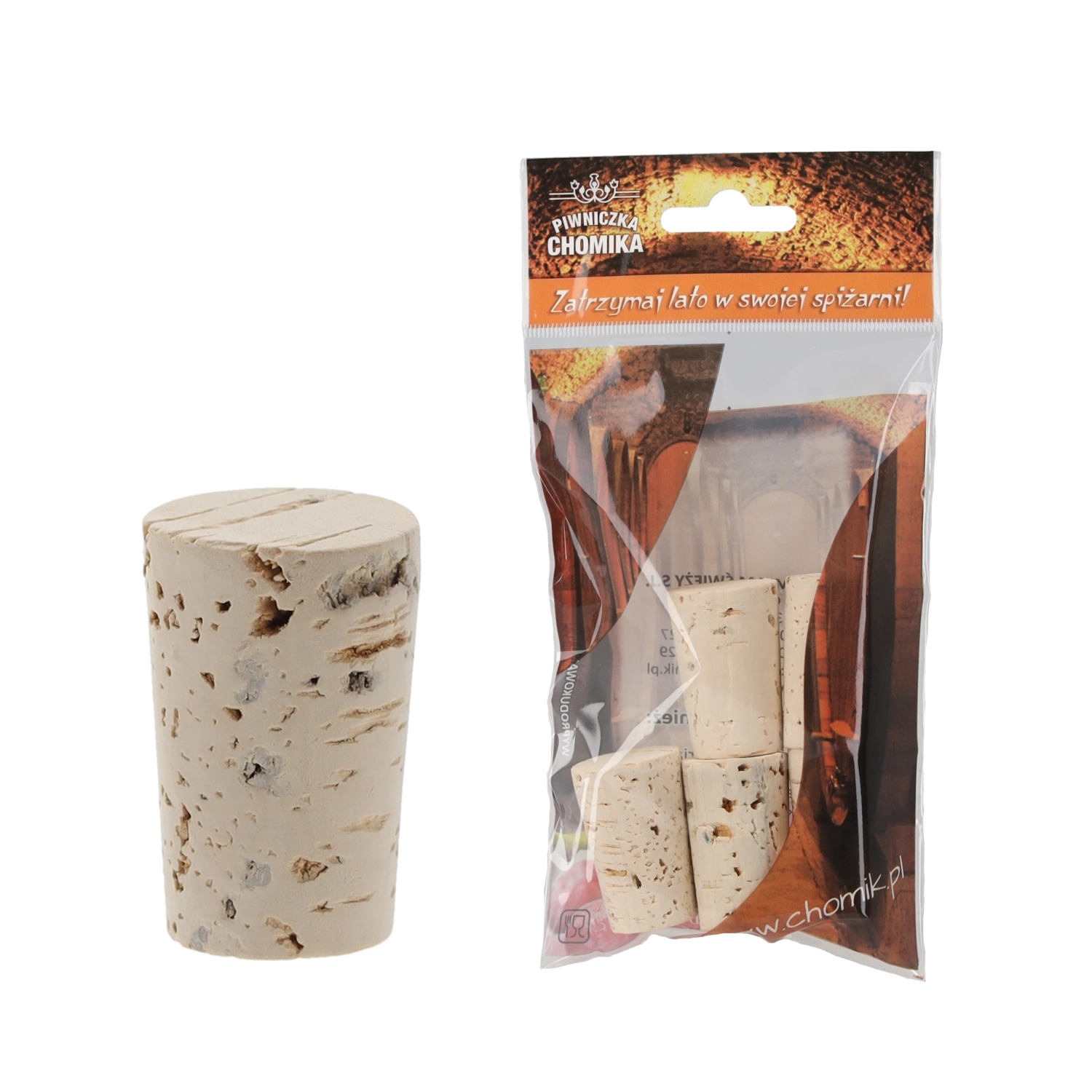 Praktická sada pěti kuželovitých korkových zátek s průměrem 25 mm pro spolehlivé uzavírání lahví a demižonů. Vyrobené z přírodního korku pro ekologické a bezpečné použití v kontaktu s potravinami. Díky těsnému uzavření chrání nápoje před oxidací a znečištěním a pomáhají zachovat čerstvost a aroma domácích vín, likérů i dalších nápojů.