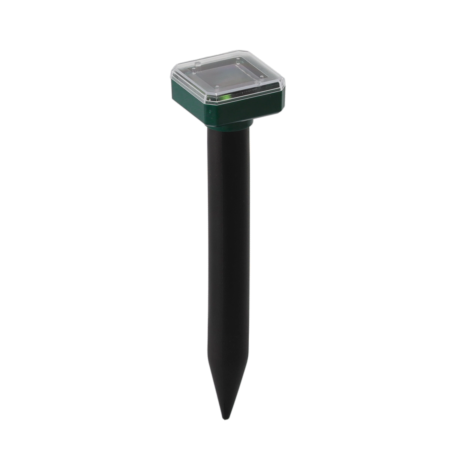 Odpuzovač vytváří vibrace a zvukové impulzy, které jsou pro škůdce nepříjemné, ale pro lidi a domácí mazlíčky bezpečné. Díky kompaktním rozměrům 6 × 6 × 26 cm se hodí do záhonů, trávníků i okrajů pozemků. Instalace je otázkou okamžiku – stačí zapíchnout do země na slunné místo.