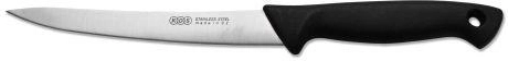 Tento filetovací nůž je navržen pro snadné a přesné zpracování ryb – od oddělování kůže až po čisté filetování. Nerezová čepel o délce 140 mm zajišťuje dlouhou životnost, odolnost vůči korozi a snadnou údržbu. S celkovou délkou 250 mm a hmotností pouhých 35 g je ideální pro detailní práci i delší krájení bez únavy ruky.