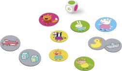 Zábavná společenská hra s motivem Peppa Pig pro 2–4 hráče od 3 let. Děti se učí barvy a zvířátka, rozvíjejí postřeh, kombinaci a jemnou motoriku. Balení nabízí 40 žetonů, herní plány a barevnou kostku. Vyrobeno v ČR z kvalitního materiálu.