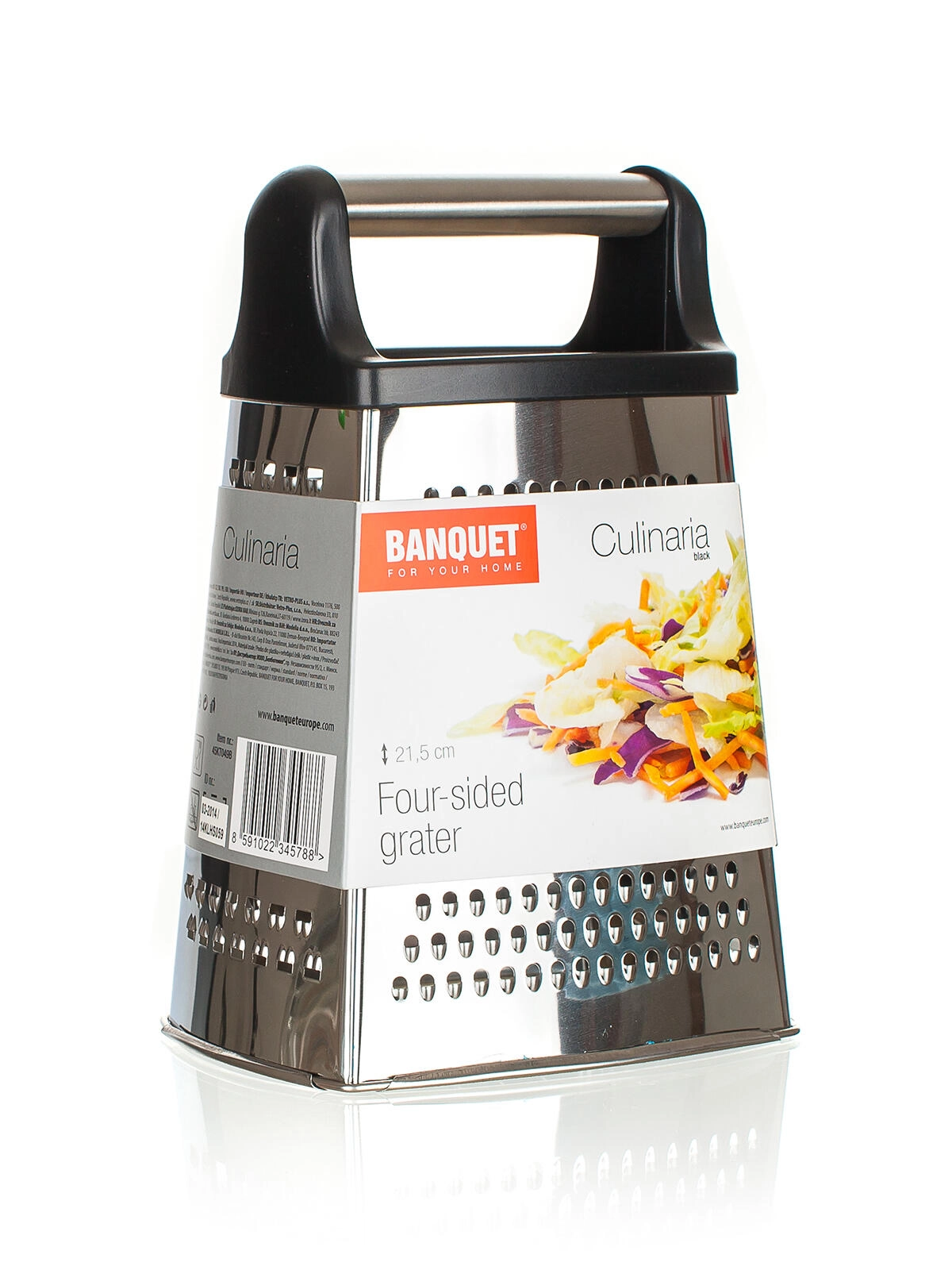 Univerzální kuchyňské struhadlo CULINARIA kombinuje robustní nerezové stěny a ergonomickou plastovou rukojeť pro bezpečný a jistý úchop. Díky čtyřem funkčním stranám snadno zvolíte správnou hrubost pro jemné strouhání, hrubé strouhání, plátkování nebo dekorativní hoblinky.