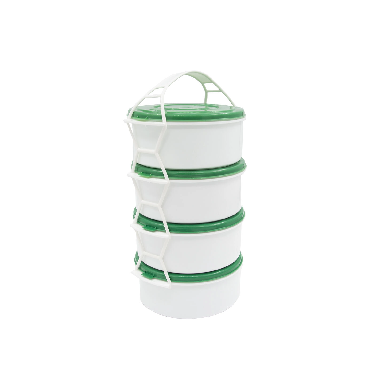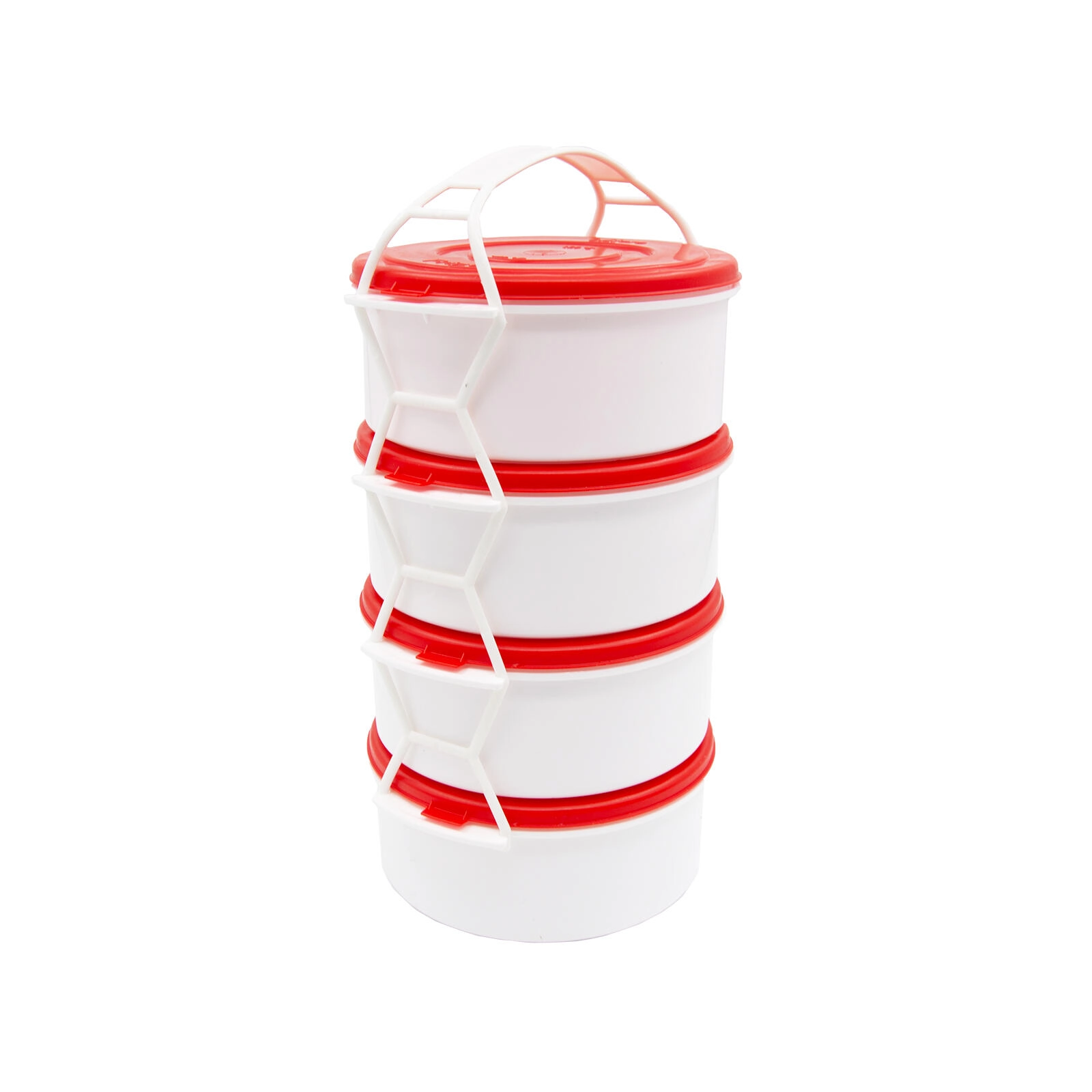 Tento vícepatrový jídlonosič nabízí chytré a hygienické řešení pro každodenní nošení jídel do práce, do školy i na výlety. Čtyři oddělené nádoby s objemem 1 l pojmou polévku, hlavní chod, přílohu i dezert, zatímco pevný rám s držadlem zajistí stabilní přenášení bez nechtěného rozpojení.